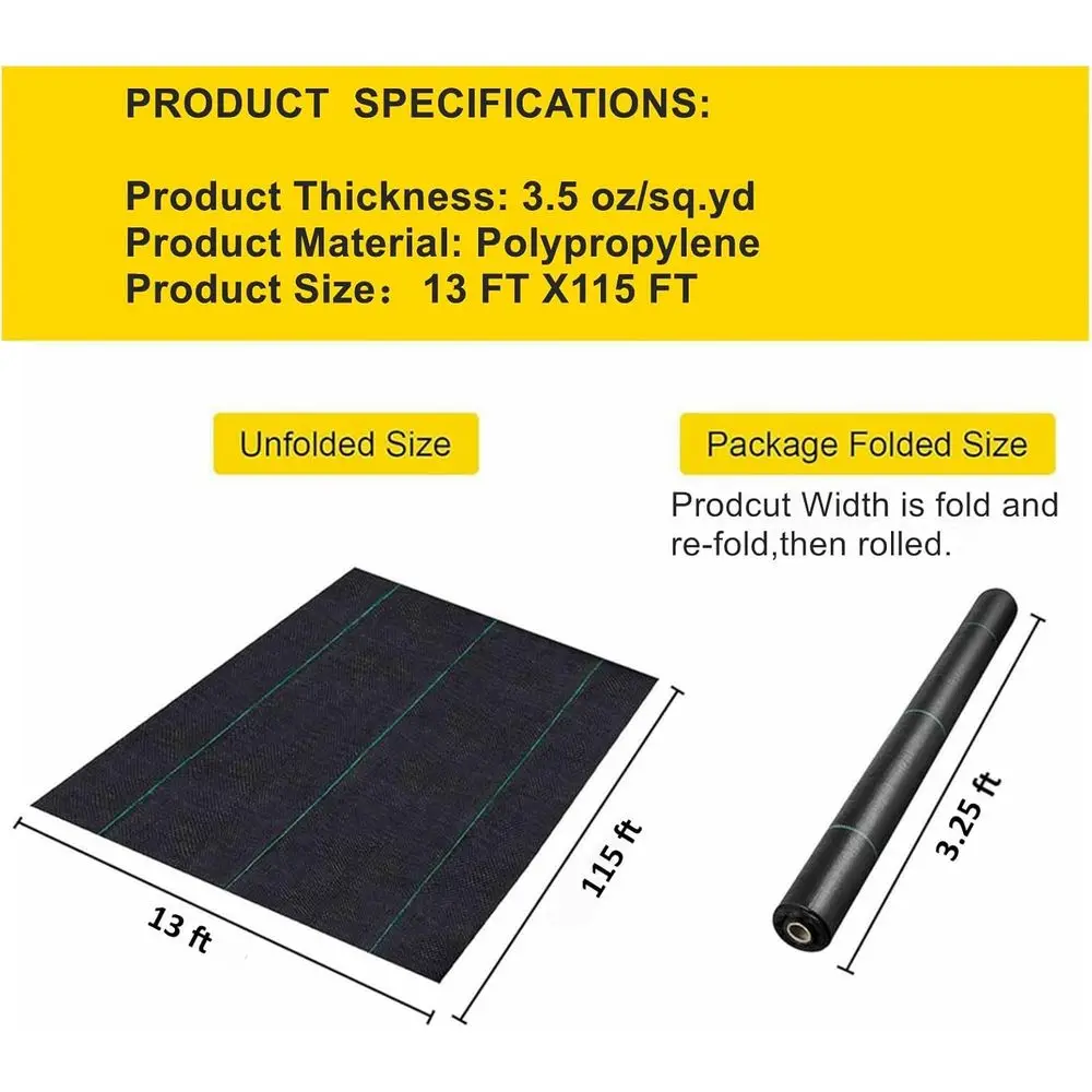 ♡Quick viewFabric 13x115ft - Commercial Weed Barrier, Heavy Duty 3.5OZ Landscape Fabric for Road, French Drain, Erosion Control, and Constr110.68 USDUSD 1529.81Hot
