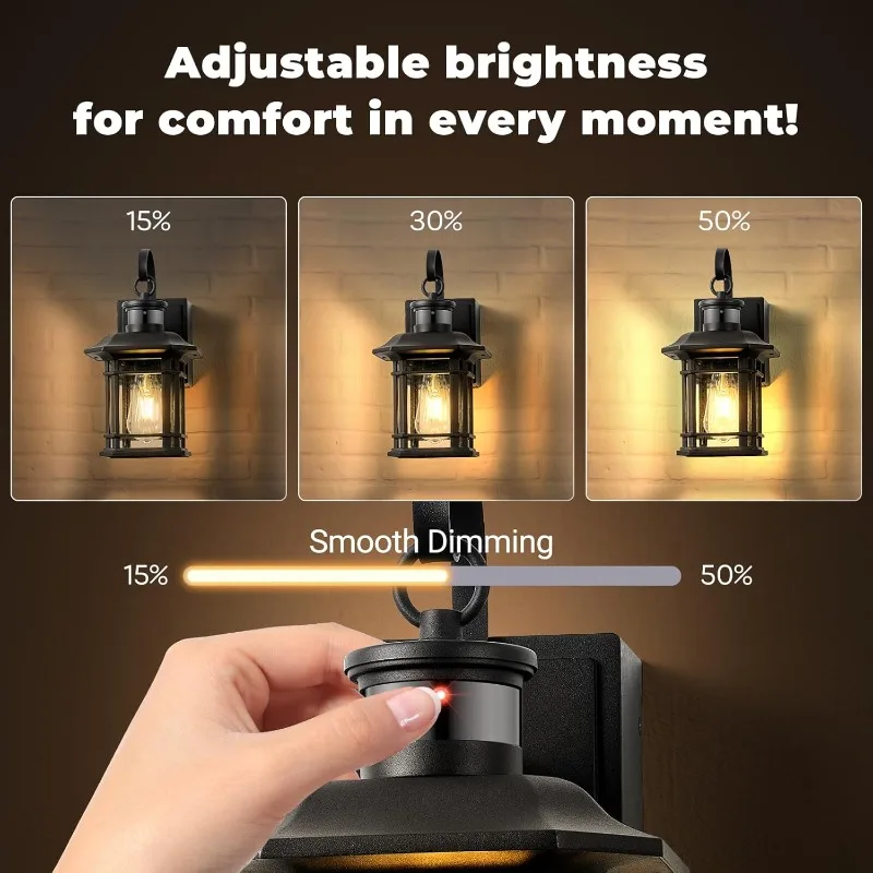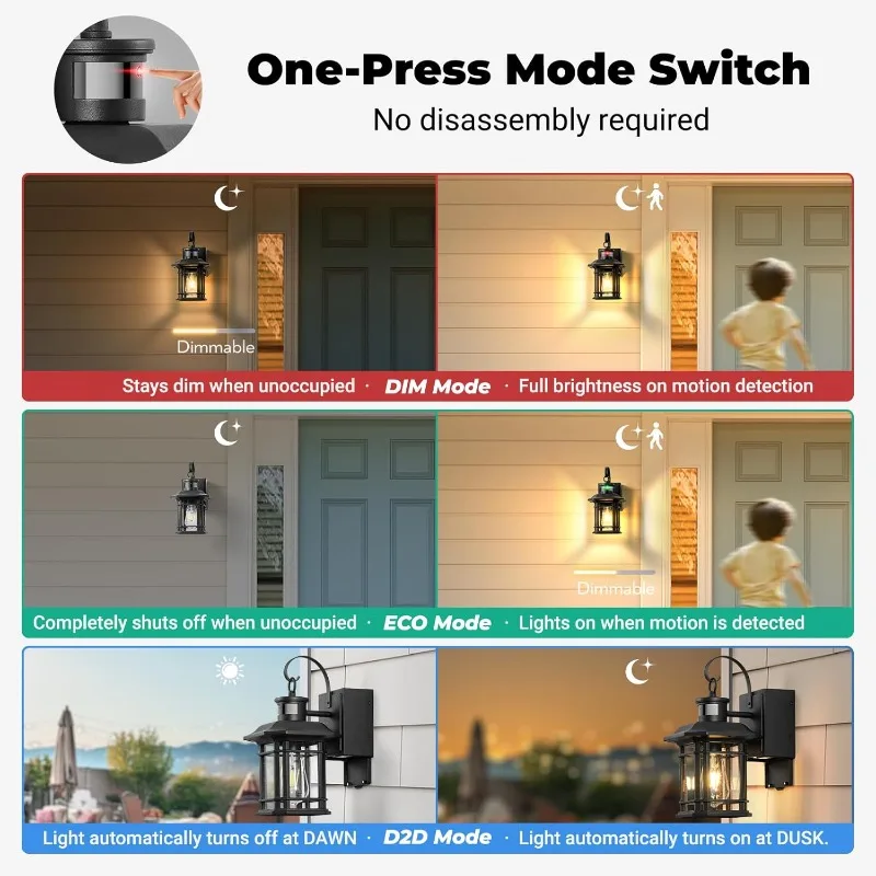 ↑2 Pack Porch Light with GFCI Outlet, 3 Lighting Modes Motion Sensor Outdoor Lights, Dusk to Dawn Outdoor Light with Outlet - TopDealBox