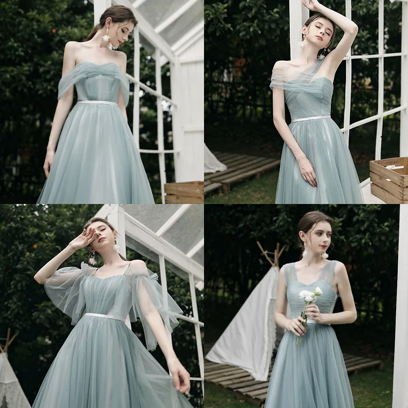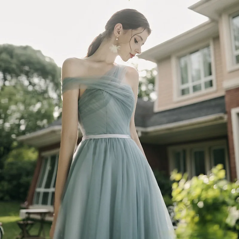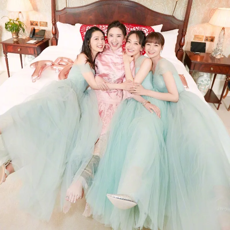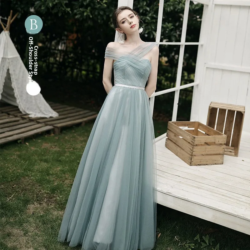 ↑2024 New Sister Maids Long Tulle Evening Gown Wedding Dr Performance aduation Gown Korean Sle Floral One oulder Dr - TopDealBox