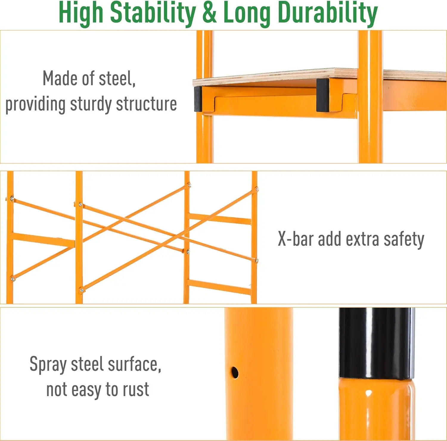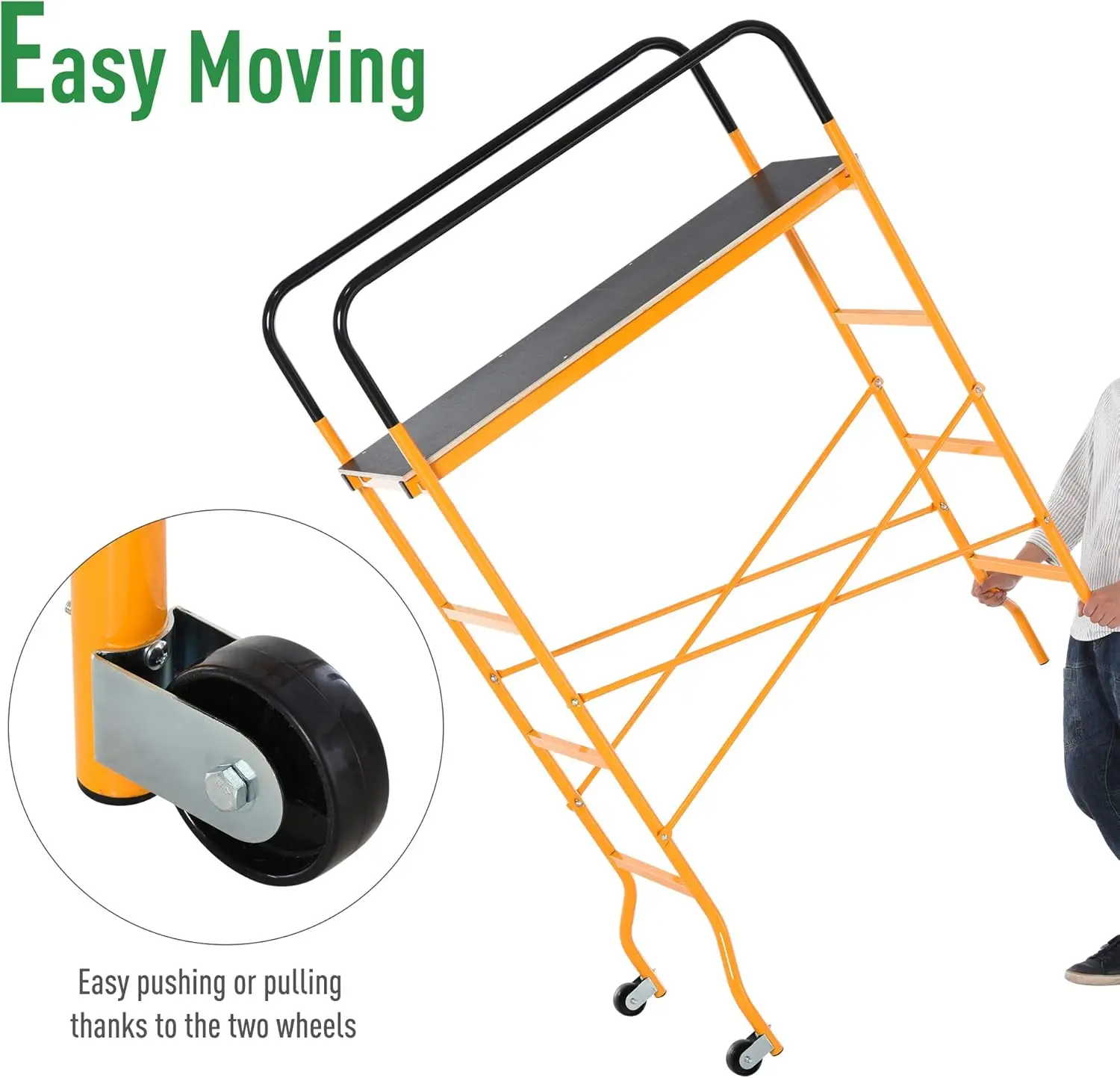 4-Step Steel Scaffold with Wheels, 440lb Capacity for Indoor & Outdoor Use, Anti-Skid Design - TopDealBox