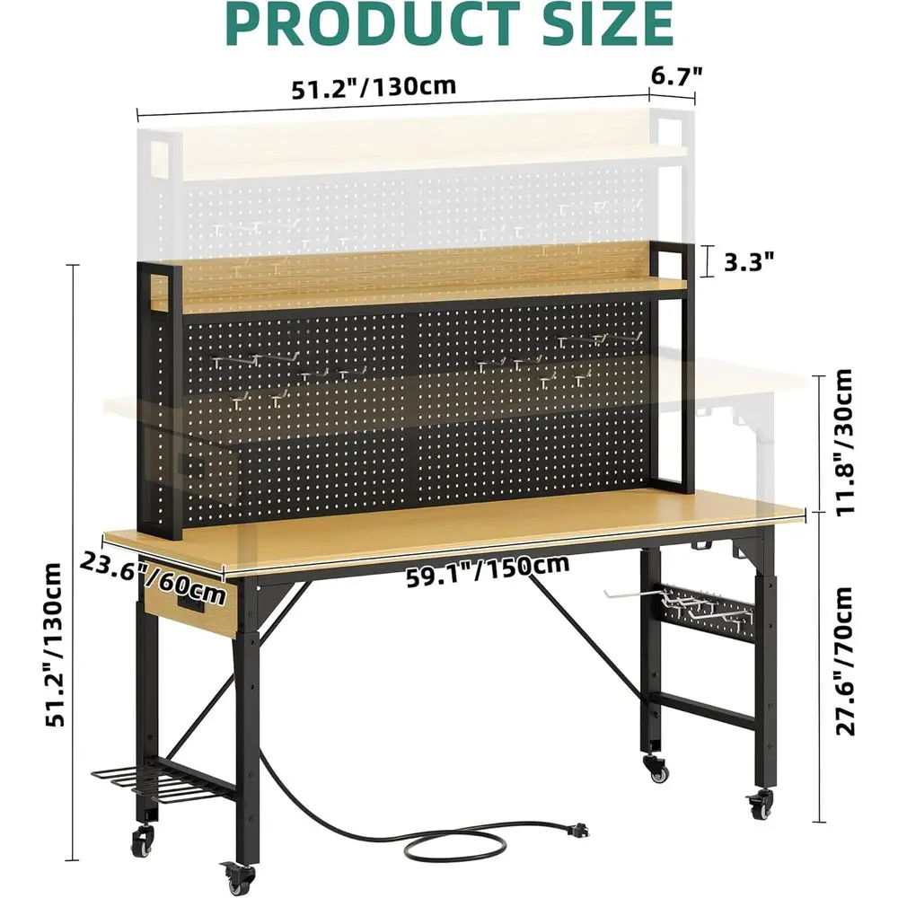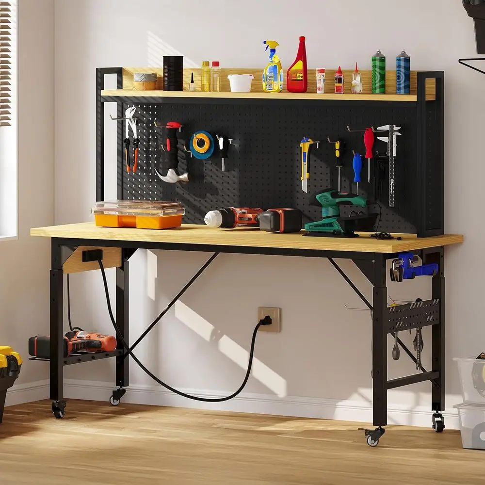 ♡Quick view72"x25" Workbench, Heavy-Duty Garage Work Table, Heavy-Duty Table with Power Outlets, Rubber Wood Top, Adjustable Height 29.5"-3268.24 USDUSD 3953.51Hot