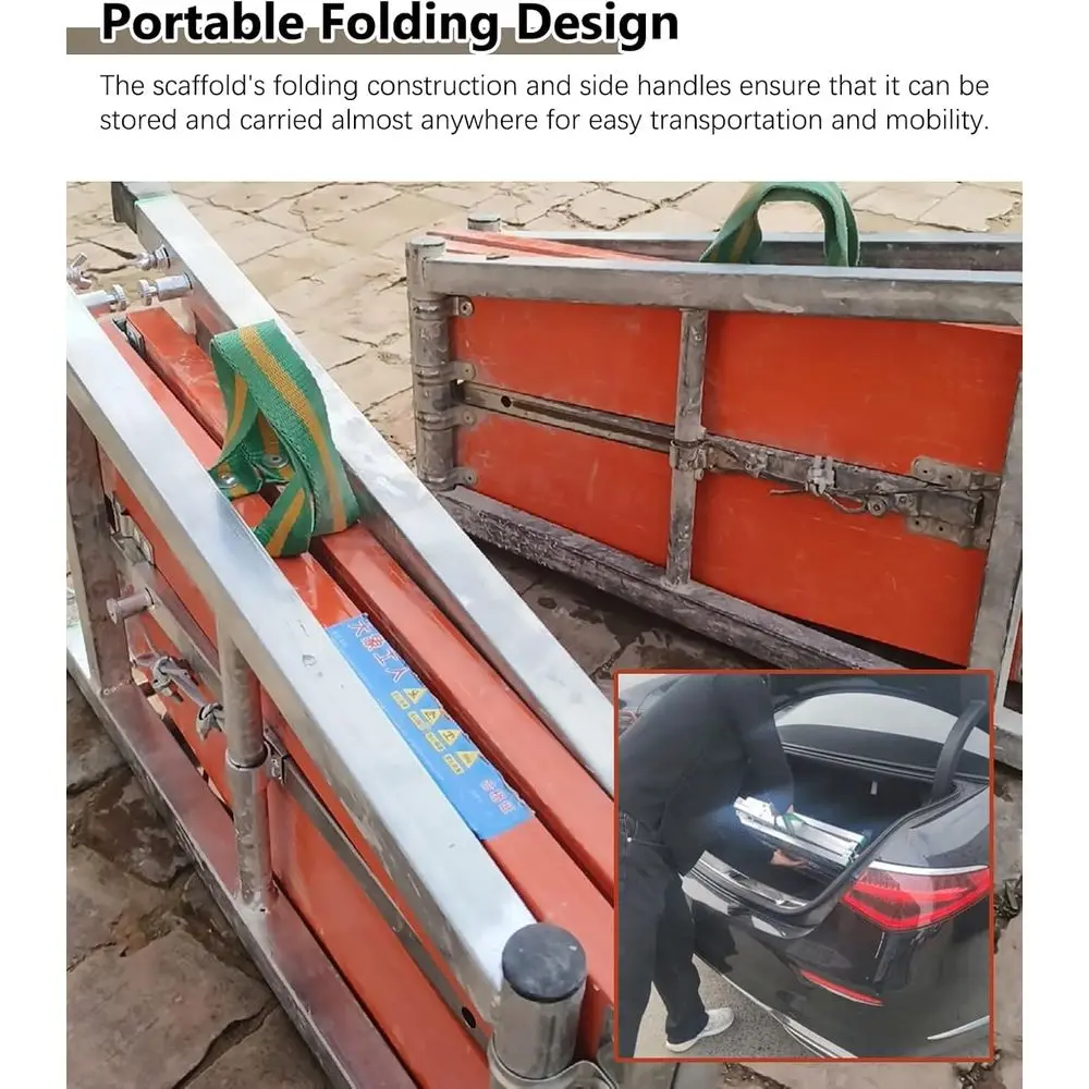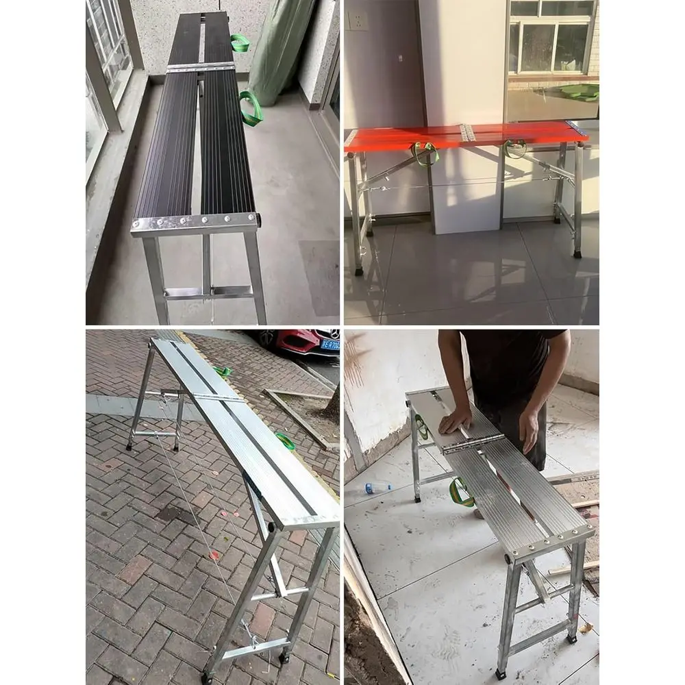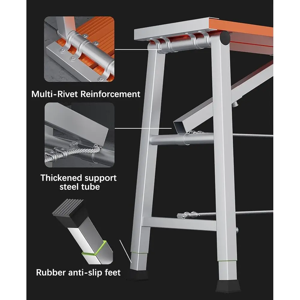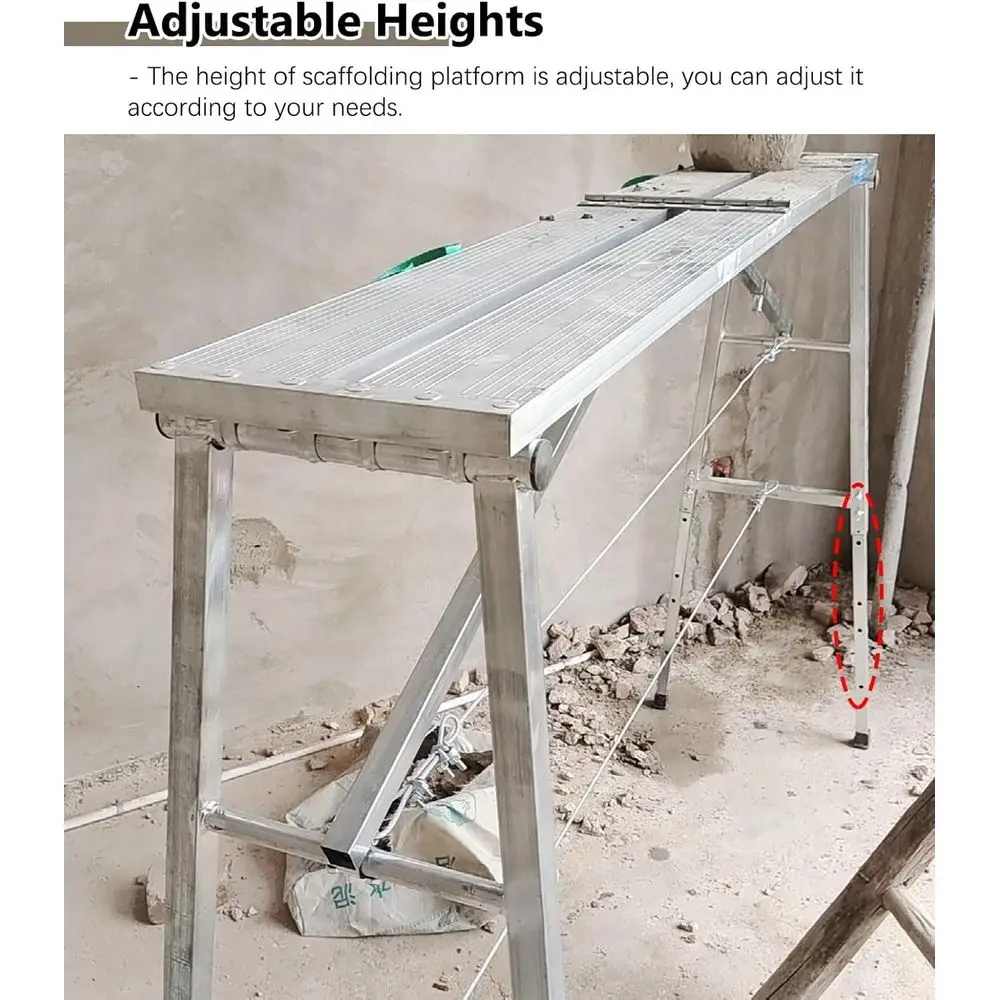 Adjustable Height Scaffolding Platform with Anti-Slip Surface, Aluminum Top and Galvanized Steel, High-Capacity (63 L) - TopDealBox