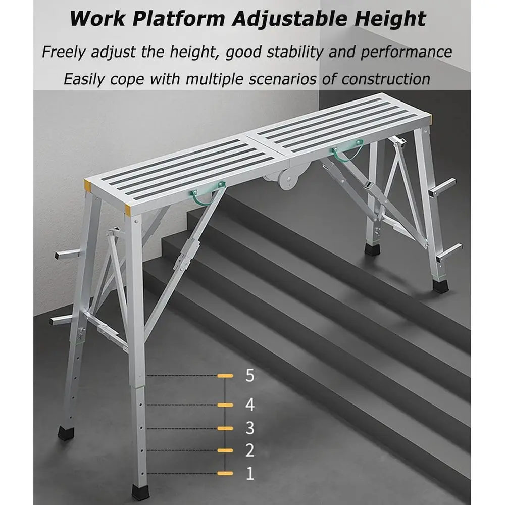 Adjustable Multi-Purpose Folding Scaffold, Work Platform and Ladder, Ideal for Vehicle Washing, Painting, and Decorating - TopDealBox