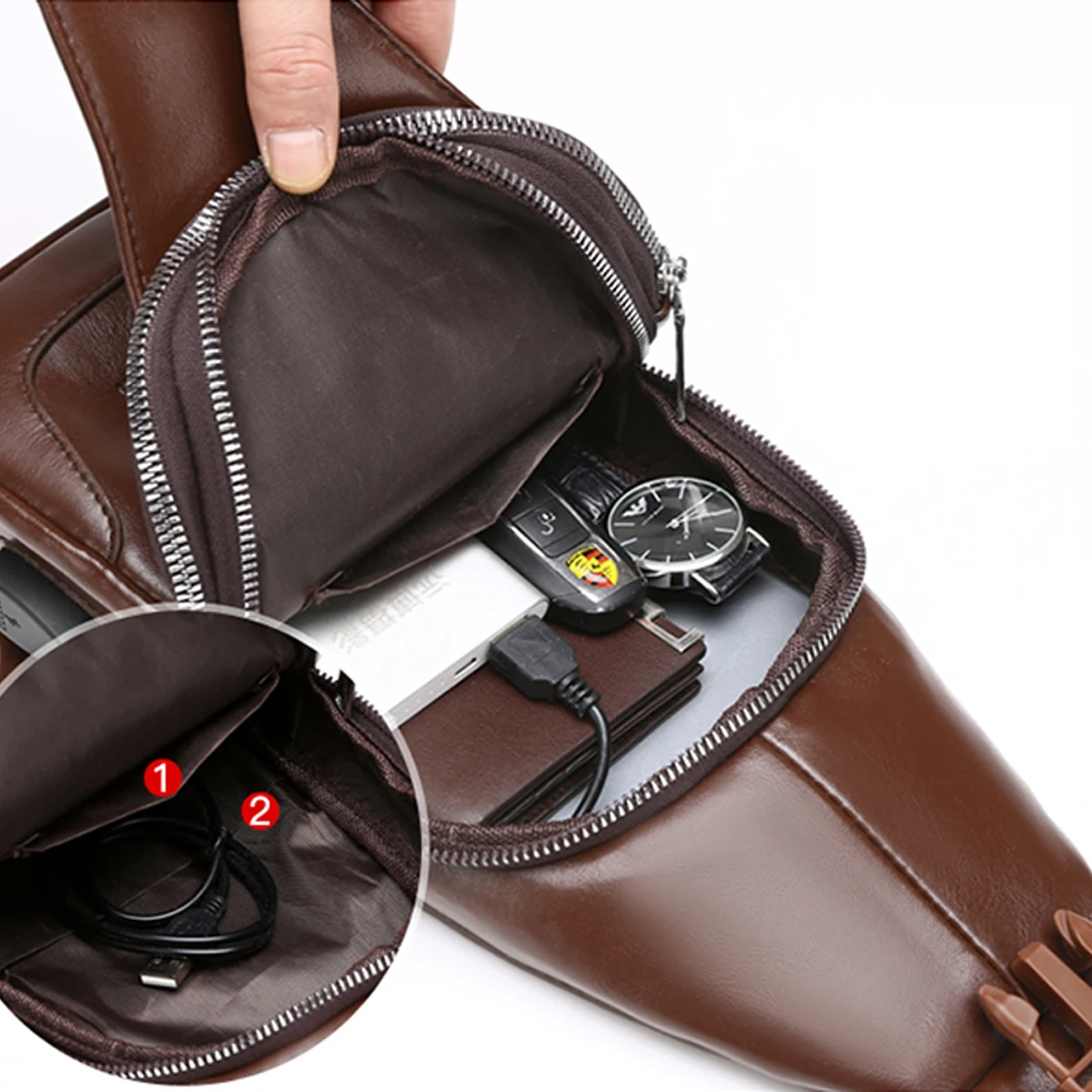 β‘Quick viewSimple and Fashionable Casual Solid Color PU Multifunctional USB Charging Zipper MEN'S Chest Bag Crossbody Bag for Commuting3.58 USDUSD 59.53Hotβ β β β β 4.2