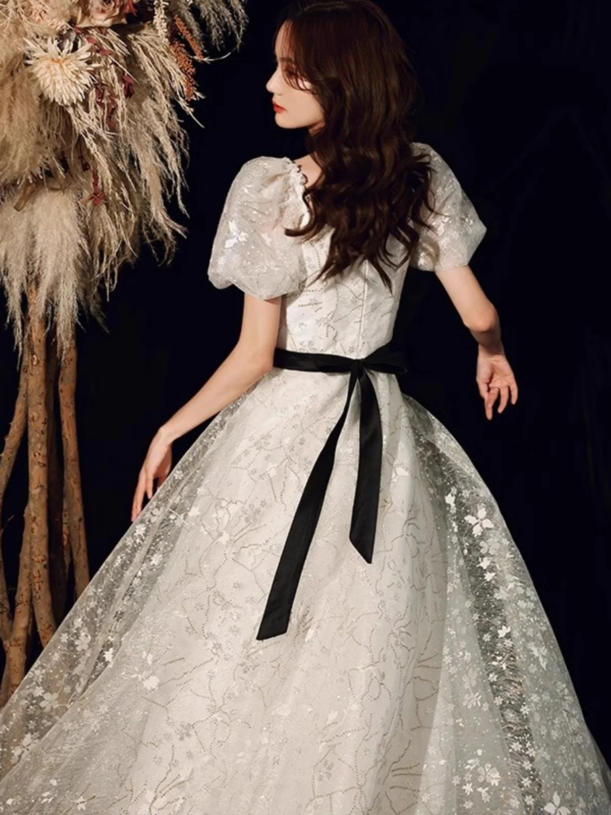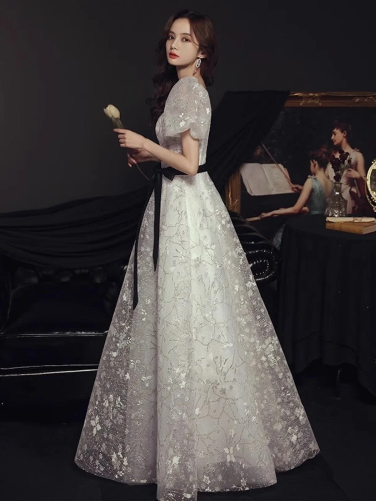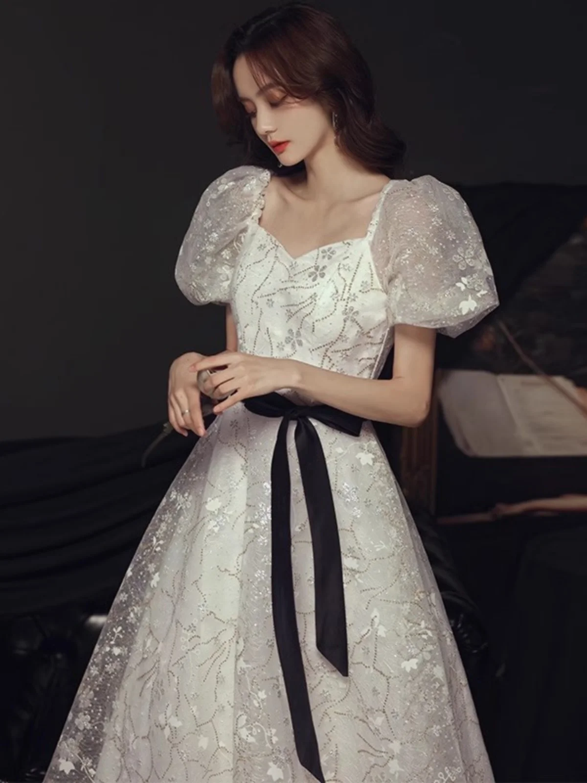 ↑Ele White Evening Gown for 8th Birthday Adult Ceremony Student Art Exam Performance Host Long Skirt Ball Dr - TopDealBox