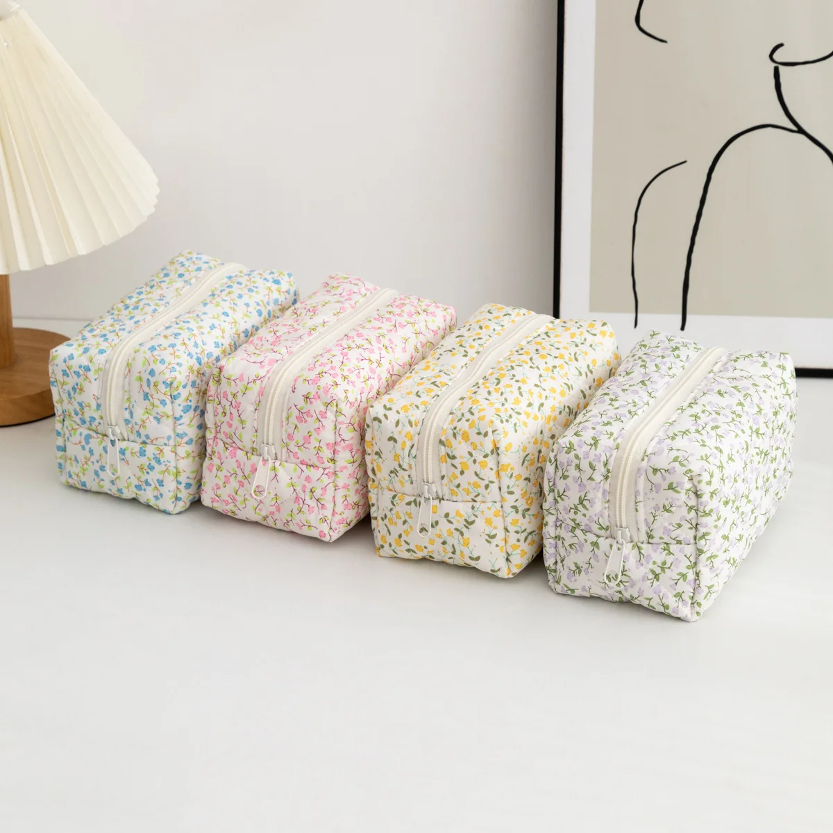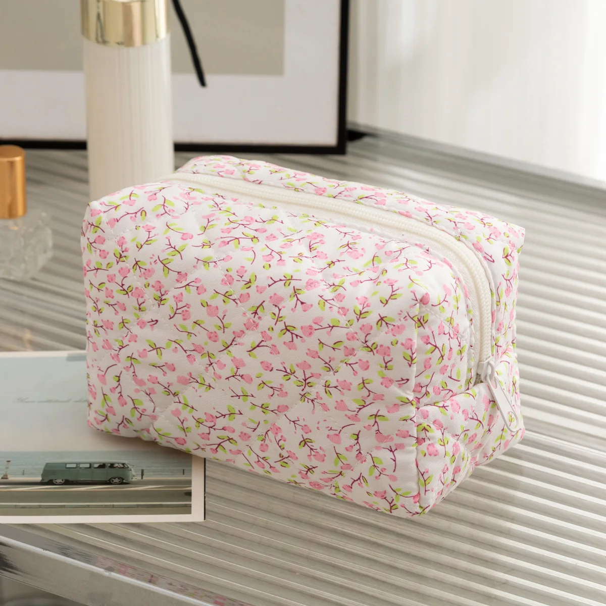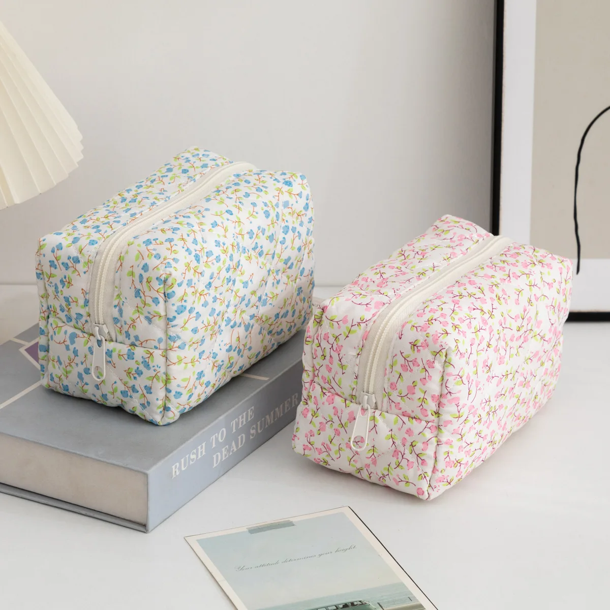 ↑Floral Puffy Quilted Large Makeup Bag Travel Cosmetic Pouch Flower Printed Storage Organizer Makeup Accessory - TopDealBox