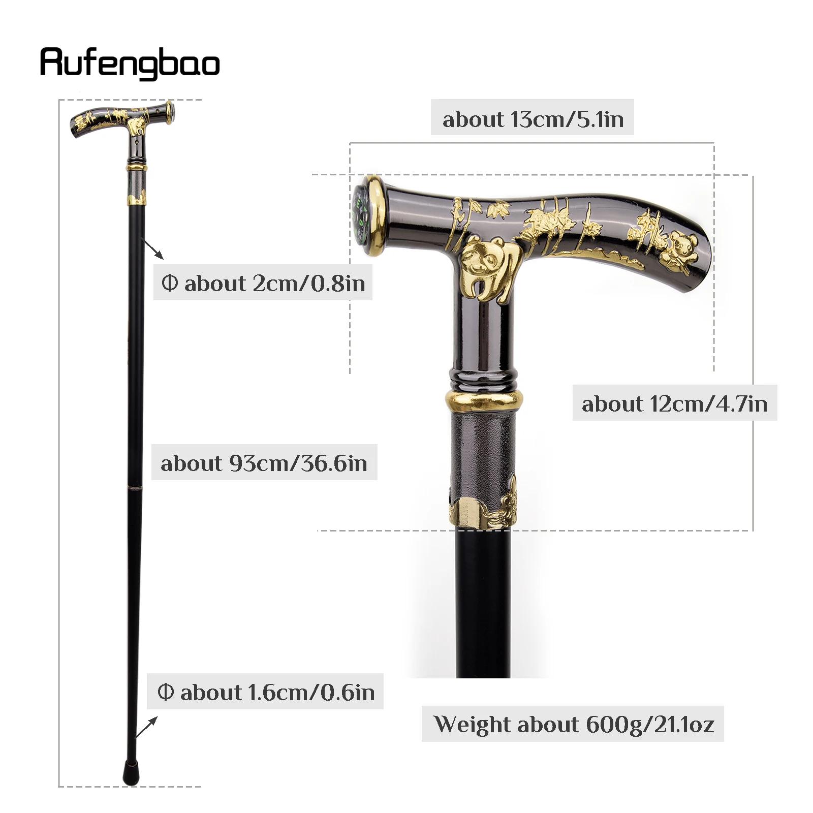 ↑Gold Black Panda Compass Walking Cane Fashion Decorative Walking Stick Gentleman Elegant Cosplay Cane Knob Crosier 93cm - TopDealBox