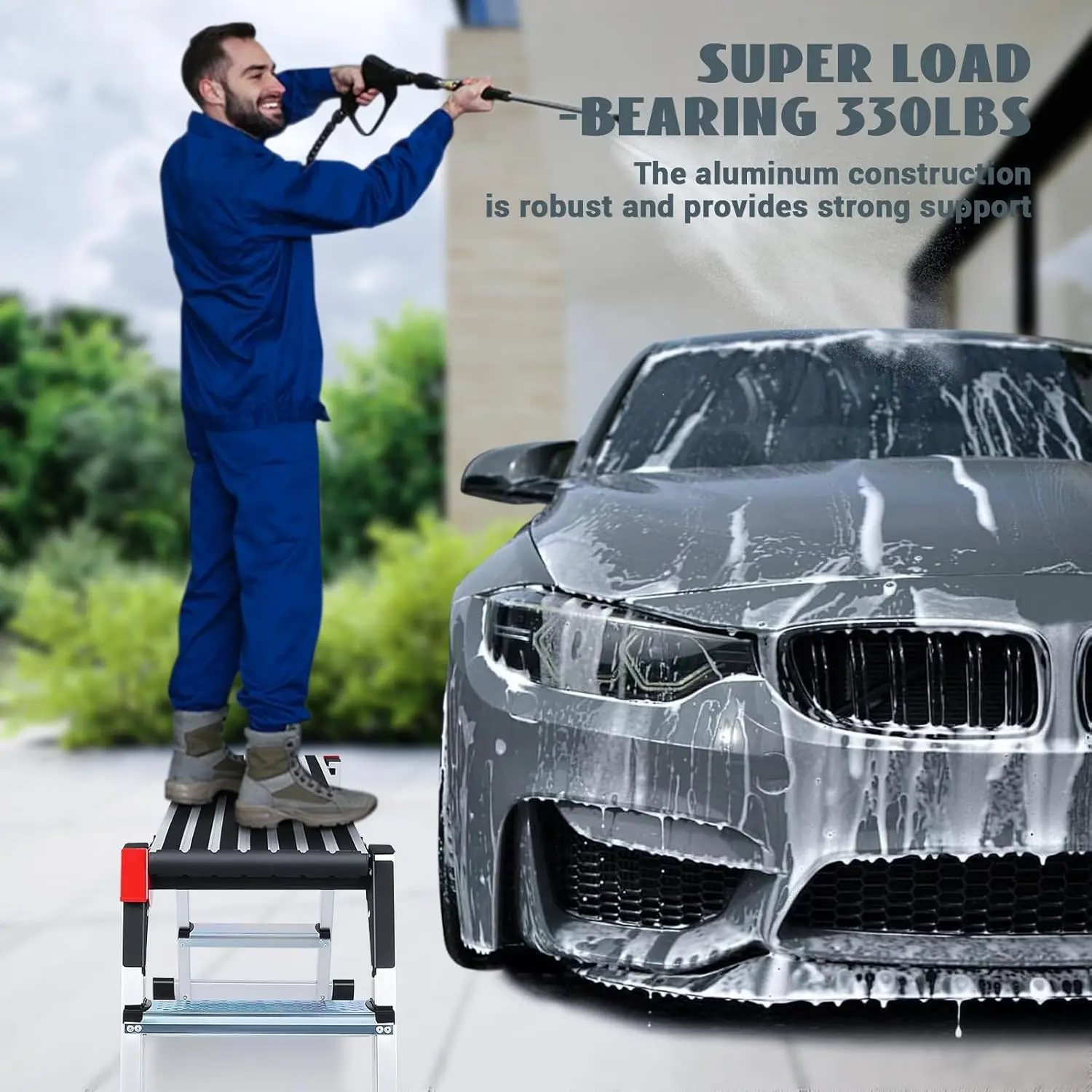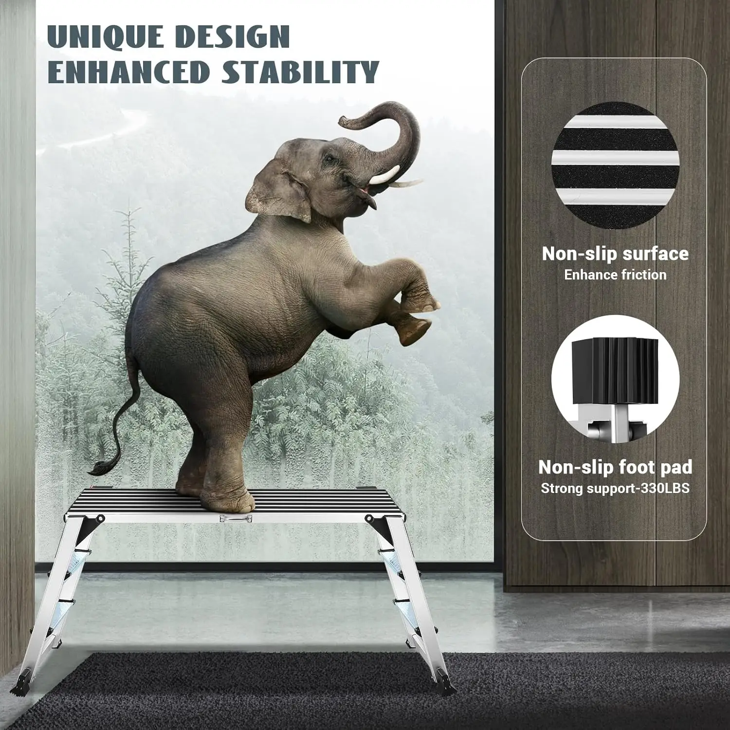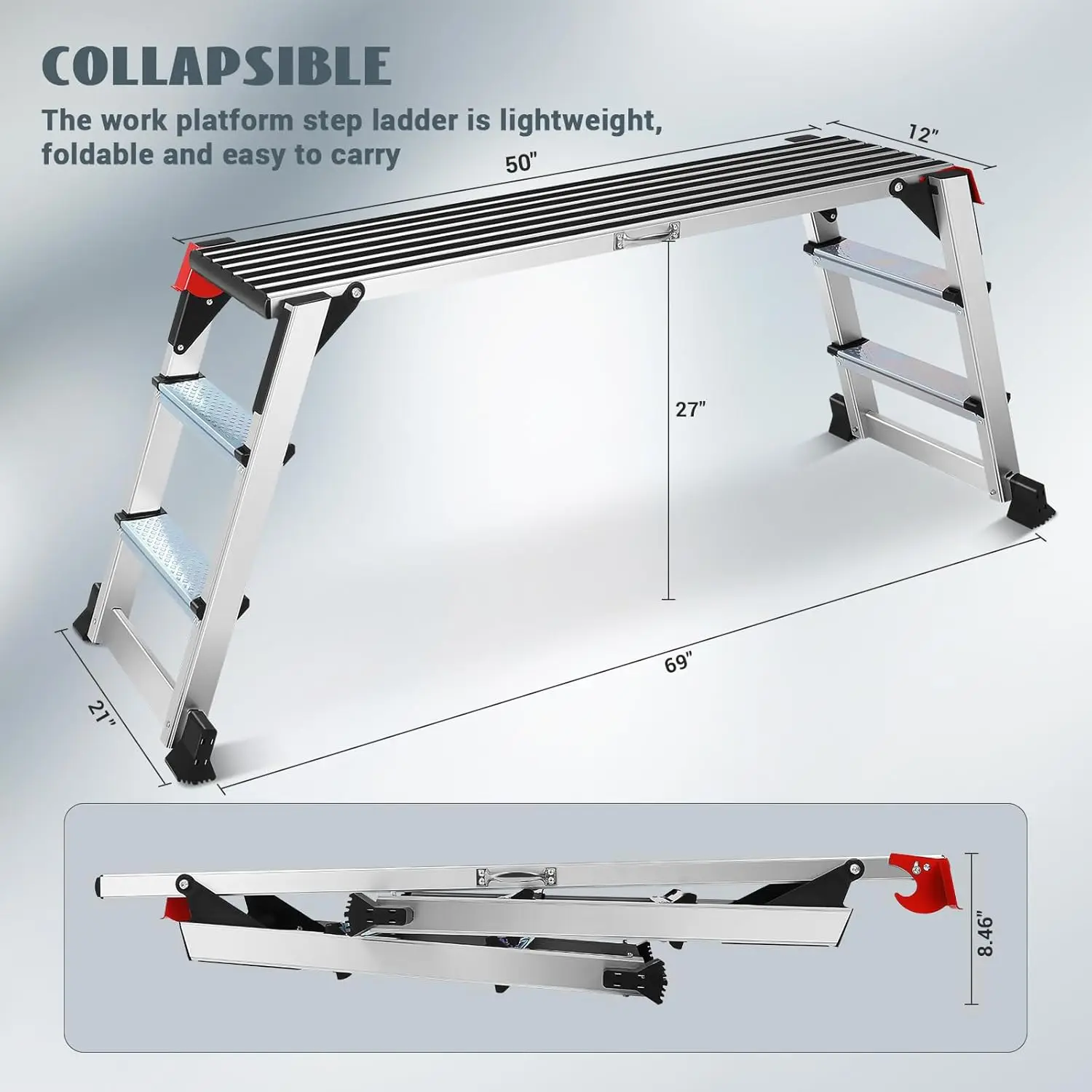 Heavy Duty Folding Aluminum Work Platform Ladder, Non-Slip Surface, 330 lbs Capacity for Cleaning and Painting - TopDealBox