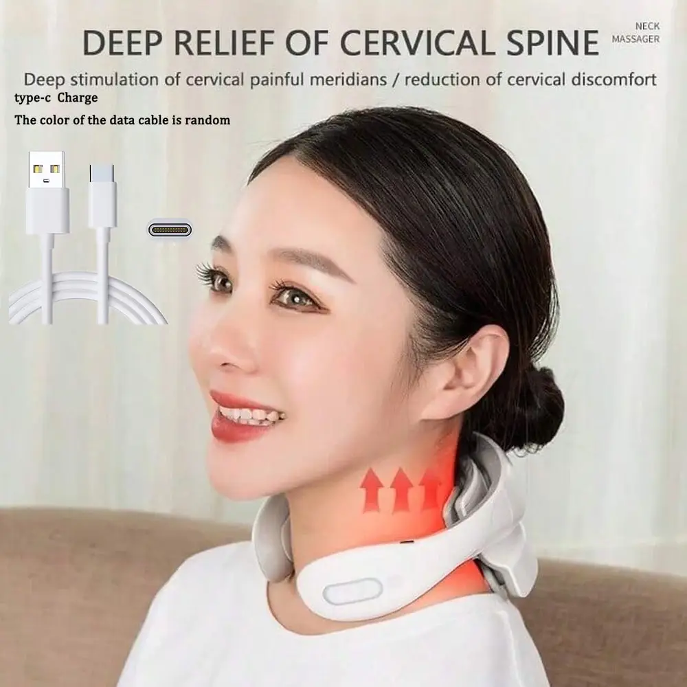 ↑Intelligent Electric Rechargeable Neck Massager With Heating, Pressure And Pulse Function - TopDealBox