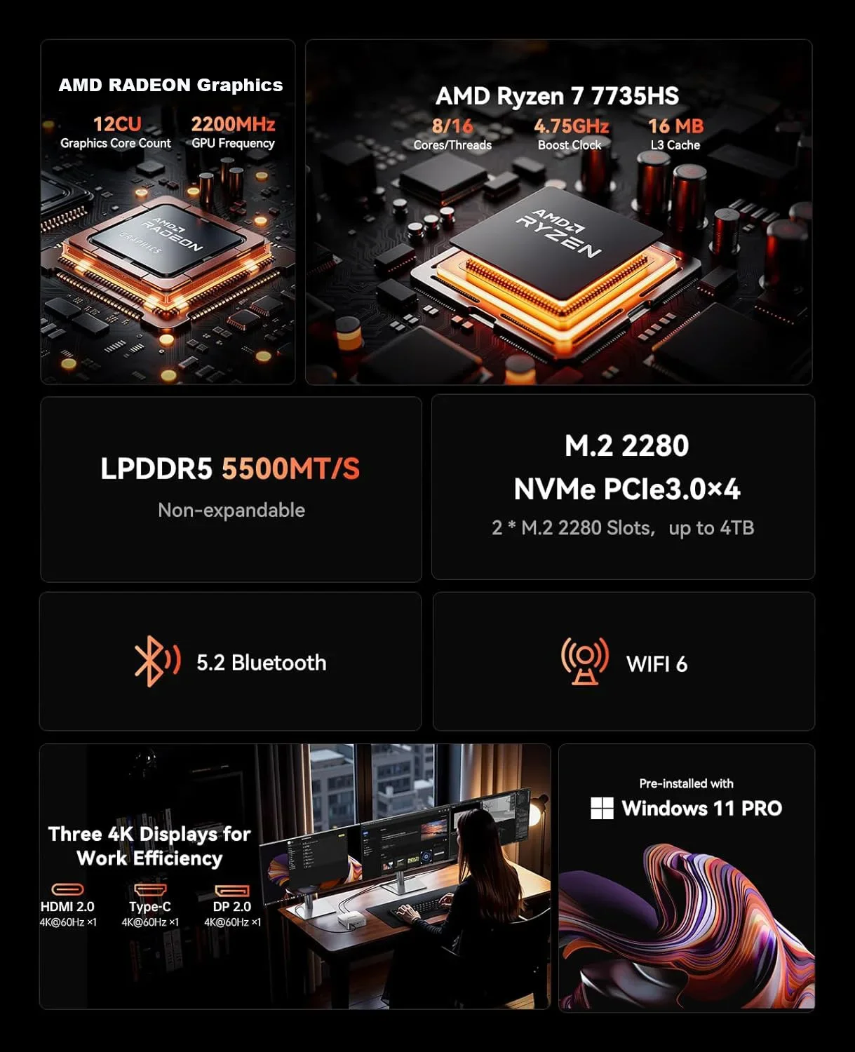 β‘Quick viewCHUWI AuBox Mini PC AMD Ryzen7 8745HS 16GB DDR5 512GB SSD WiFi 6 BT 5.1 2.5G LAN Support Quad DisplaysUp to 4K Windows 11 Pro546.69 USDUSD 7561.38Hotβ β β β β β 4.9