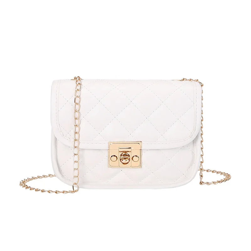 ↑New personalized diamond grid women's bag, fashionable single shoulder cover lock small square bag, elegant and simple chain bag - TopDealBox