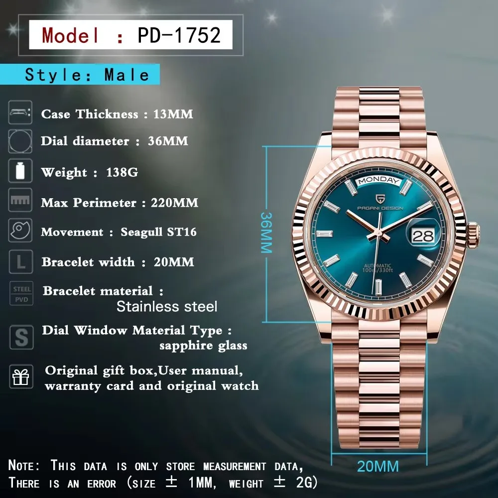 ↑PAGANI DESIGN DD36 Men's Watches Rose Gold Luxury Automatic Watch For Men Mechanical Wristwatches Sapphire Mirror Clock Gift Man - TopDealBox