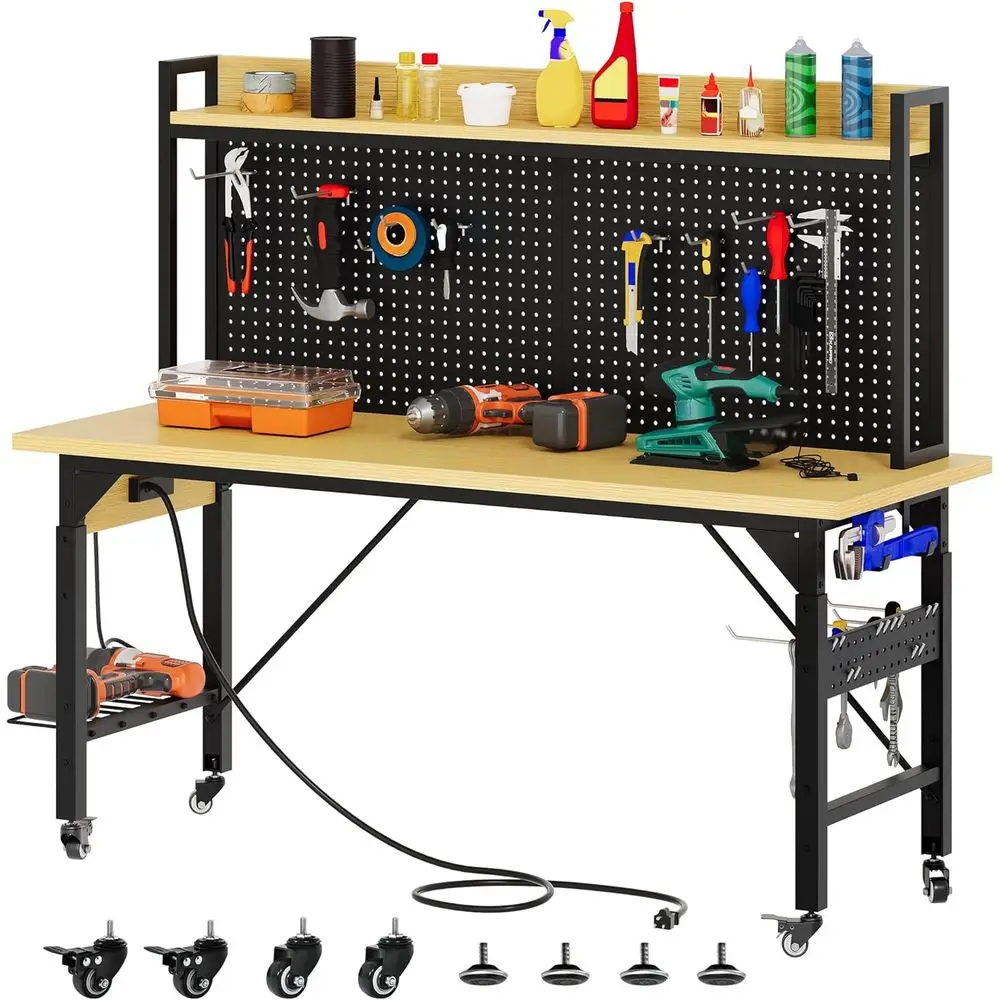 ♡Quick view60" Adjustable Workbench with Pegboard, Wheels & 1600 LB acity, Rolling Work Table with AC/USB Outlets, Hooks, and Rack, Heavy-D198.18 USDUSD 2920.87Hot