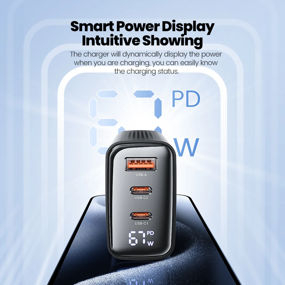 ↑Toocki GaN USB C Charger 33W/67W Digital Display PD QC Fast Charging 40W Type C Phone Charger for iPhone 17 16 15 Samsung Xiaomi - TopDealBox