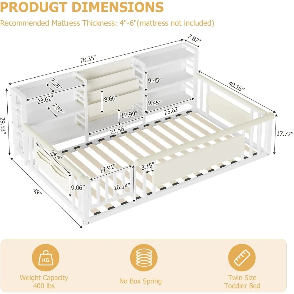 β‘Quick viewSize Floor Bed for Kids, Montessori Baby Bed Frame with Door, Twin Toddler Beds with Rail for Boys and Girls, No Box Spring199.54 USDUSD 2748.56Hot