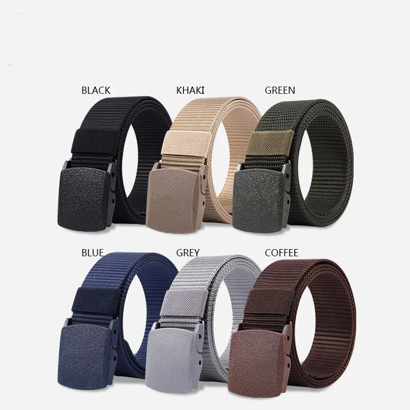 Cinturón de lona para hombre, hebilla de plástico, cinturón táctico de nailon sin Metal, cinturón para mujer