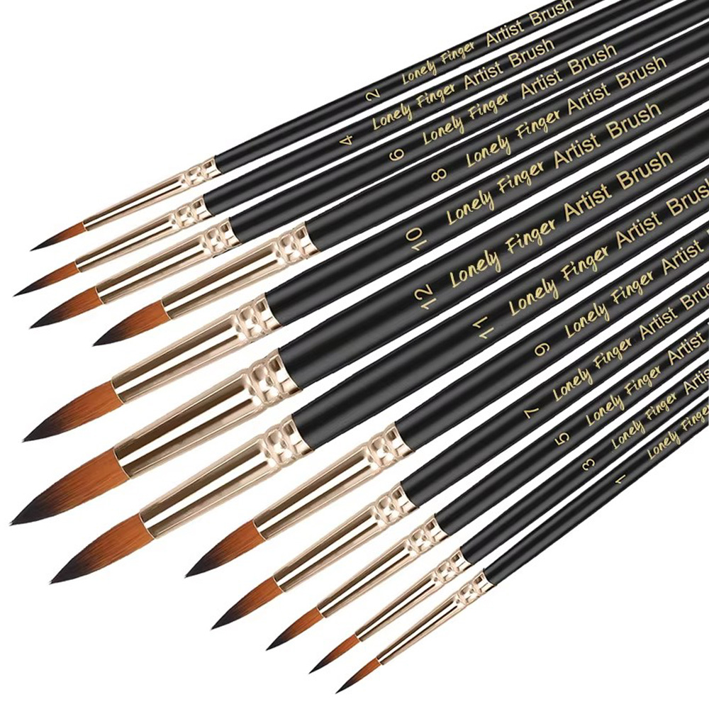 12Pcs Artist Paint Brush Set - Versatile Pointed & Round Tips for Watercolor, Acrylics, Ink, Gouache, Oil, Tempera