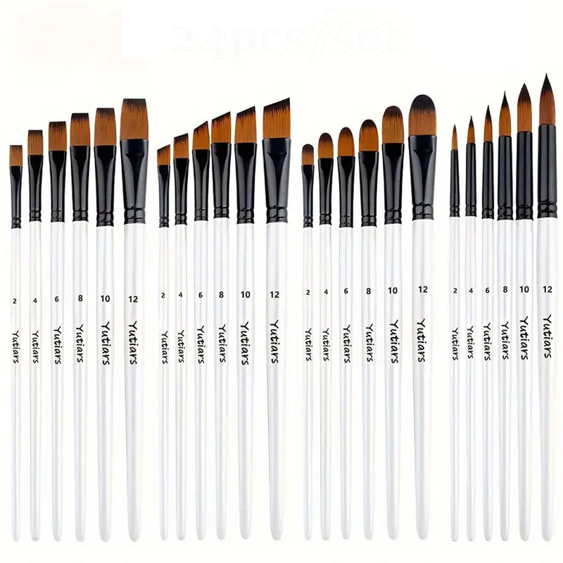 12pcs Nylon Paint Brush Set - High-Quality Synthetic Bristles for Acrylic, Oil, Watercolor, Drawing, and Art Supplies