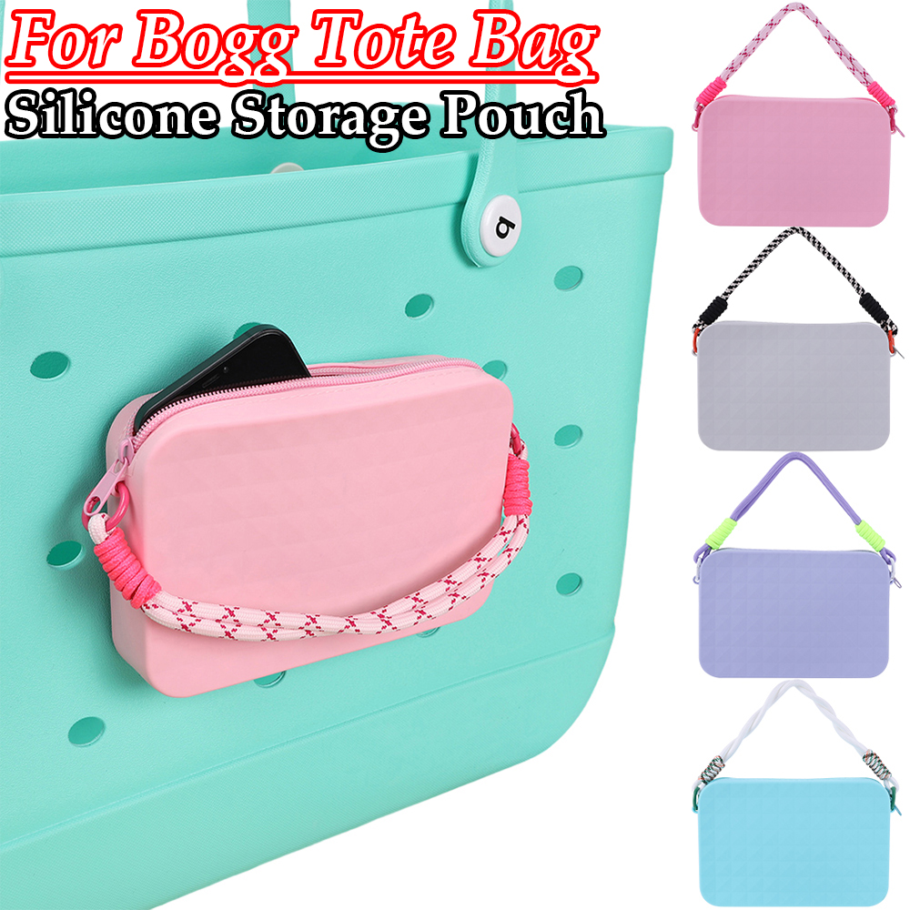 Silicone Storage Pouch Beach Bag Connector with Lanyard Cosmetics Storage Bag Large Capacity for Bogg Bag