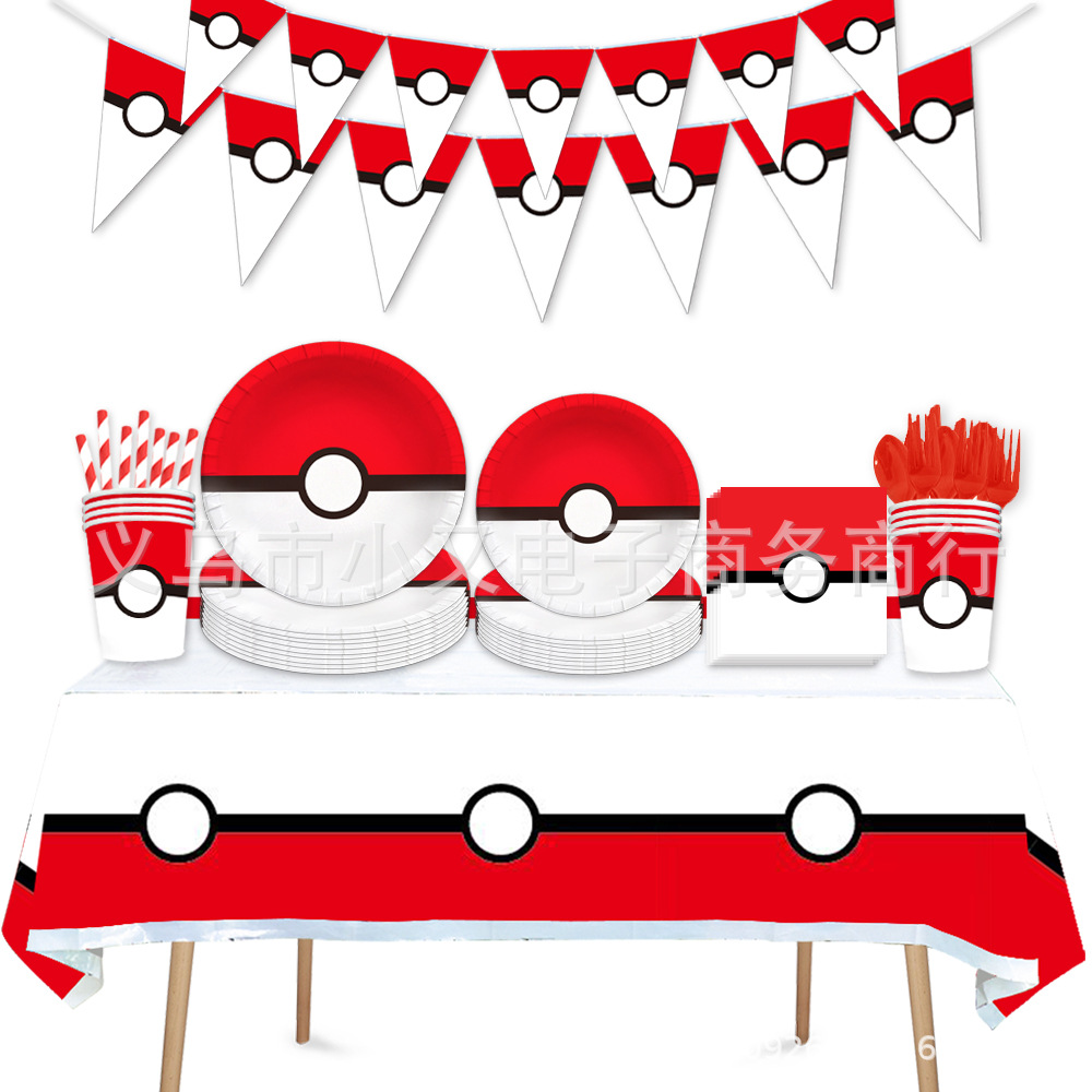 Pikachu Fairy Pocket Elf Ball Birthday Party Tableware Supplies Paper Plate Tissue Tablecloth Decoration Arrangement Supplies
