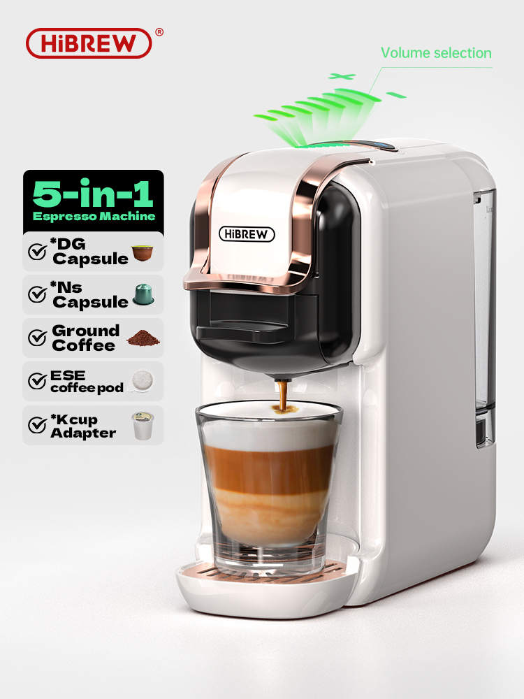 HiBREW Multiple Capsule Coffee Machine, Hot/Cold Dolce Gusto Milk Nespresso Capsule ESE Pod Ground Coffee Cafeteria 20Bar 5 in 1