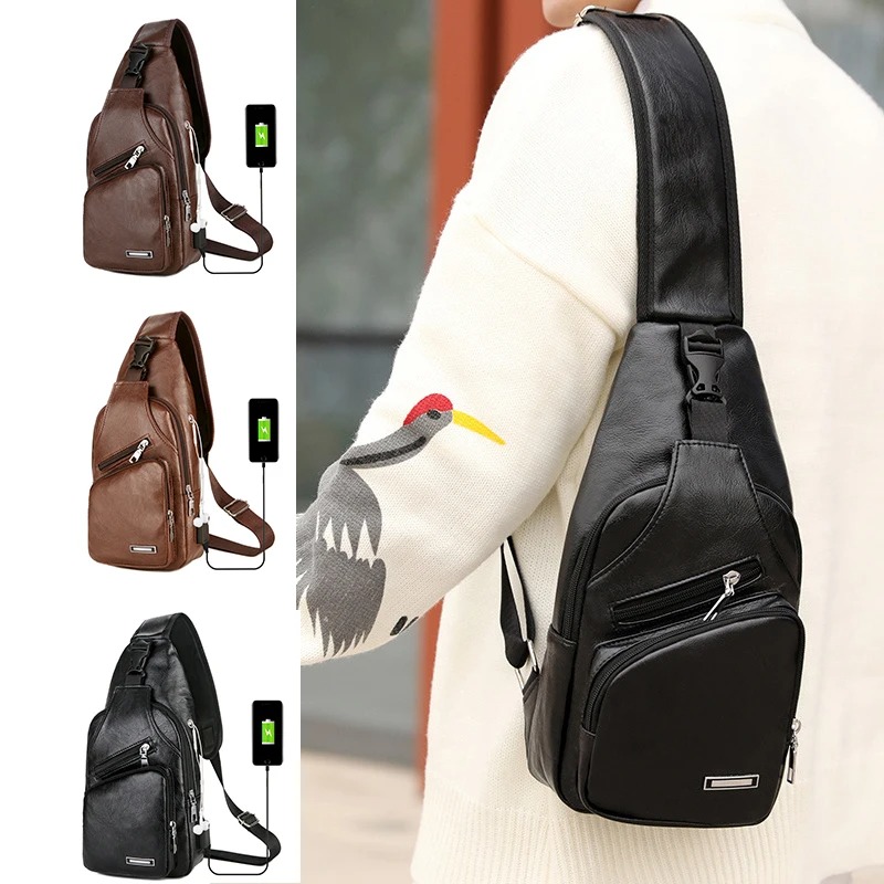 New Men's Anti Theft Chest Pack with USB Charging for Short Distance School Gym