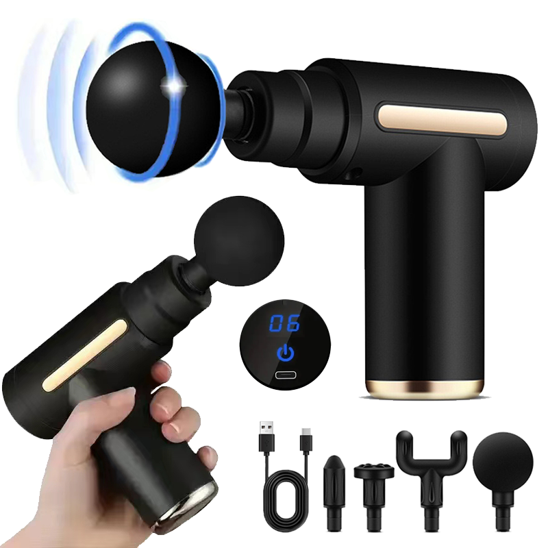 Portable Fascial Massage Gun Electric Percussion Pistol Massager Body Relaxation With LED Touch Screen 4Replaceable Head