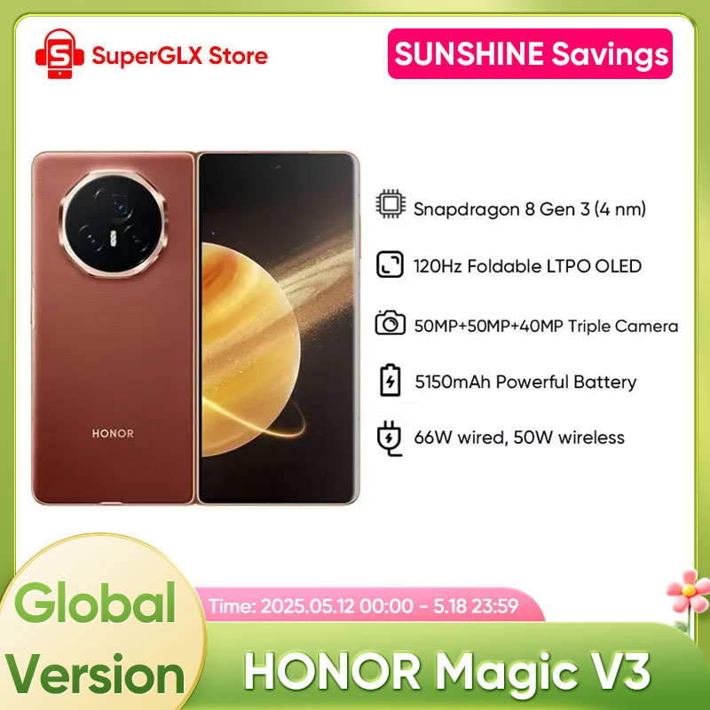 Global Version Honor Magic V2 5G Foldable LTPO OLED 120Hz Display 7.92" 50MP Rear Cameras Snapdragon 8+ Gen 2 5000mAh 66W NFC