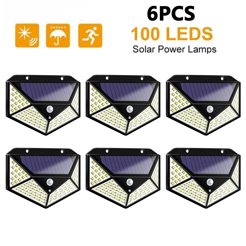 Solar Lights Outdoor Garden Lights Body Sensor Wall Lights Four Side 100 LED Rechargeable Home Lighting Street Lights