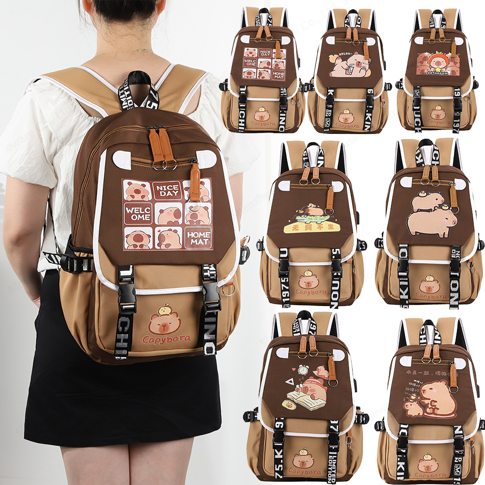 Capybara School Bag Waterproof Backpack Large Capacity Alleviate Burden Protecting Spine Widen Straps Backpack for Students Gift