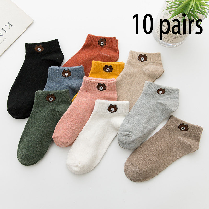 5Pairs Black and white cat women's socks, glass fiber breathable sweat absorbing , wear-resistant and odor proof summer socks