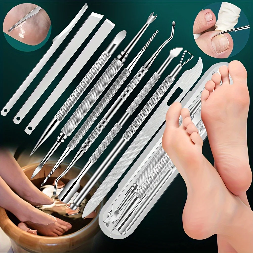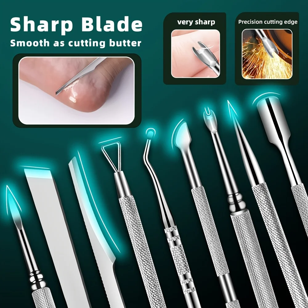 ↑10pcs Stainless Steel Pedicure Tool Set Professional Foot Care Exfoliator for Smooth Light Beige,Portable Travel Case Included - TopDealBox