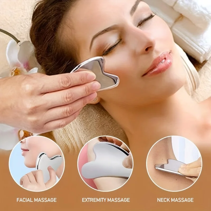 ↑1/4 Pieces Contour Brush Scraping Board Set Women's Lymphatic Contour Facial Brush Stainless Steel Scraping Board - TopDealBox