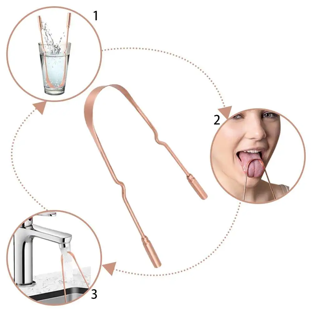 ↑1PC/2pcs Eco-Friendly Copper Tongue Cleaner Reusable Zero Waste Oral Hygiene Tongue Scraper with Wide Cleaning Span - TopDealBox