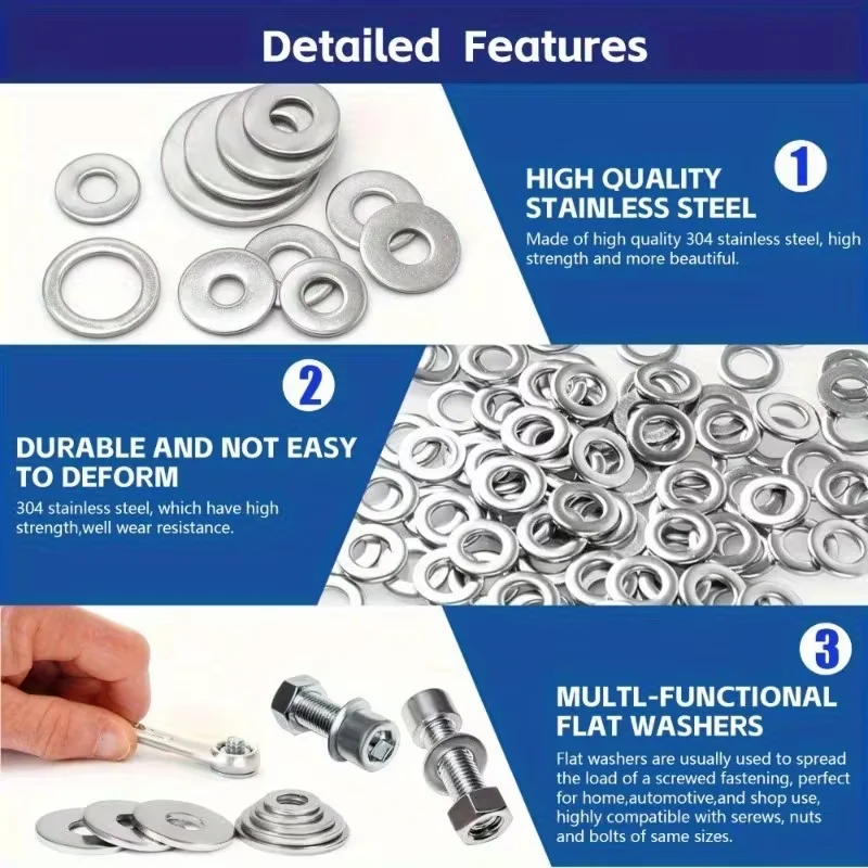 β‘Quick viewStainless Steel Flat Washer Assortment Kit (M2, M2.5, M3, M4, M5, M6, M8, M10) - Suitable for Home Decorations& Factory Repairs3.07 USDUSD 47.18Hotβ β β β β β 4.6