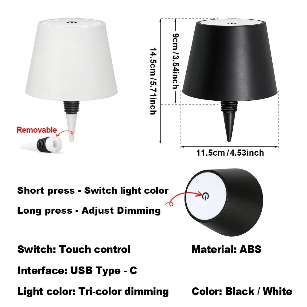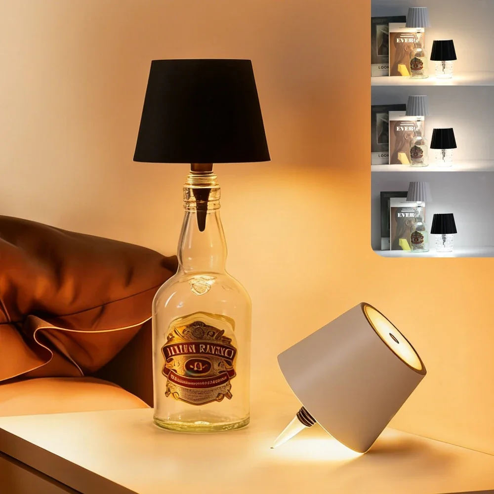 ↑Wireless Wine Bottle Lamp Type-C Touch Control 3 Colors and Stepless Dimming LED Desk Light For Bar Cafe Atmosphere Night Light - TopDealBox