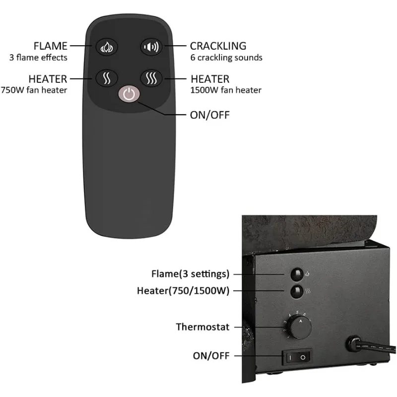 ↑25" W Free Standing Electric Fireplace Log Set (EF484), Fireplace Insert, Heater 750W/1500W, Crackling Sound, Remote - TopDealBox