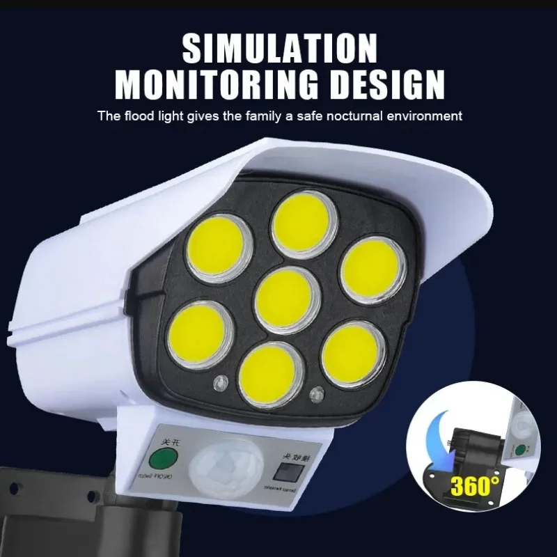 ↑3 Modes Multi-angle Lighting Remote Control Solar Powered Simulation Monitoring Induction Wall Lamp with Red Light Warning - TopDealBox