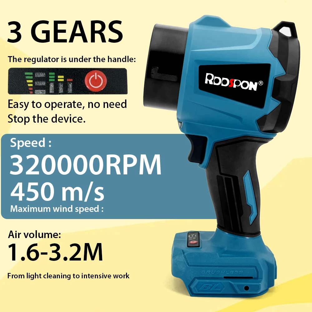 ↑3000W Brushless Powerful Air Blower 450m/s Turbo Jet Blowers 320000rpm Handheld Leaf Blower For Makita Battery Tools Power - TopDealBox