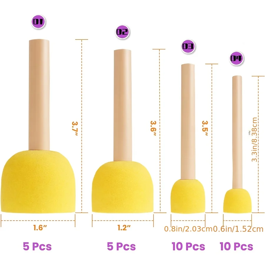 ↑30Pcs Round Sponge Brushes for Painting (4 Sizes), Paint Sponges for Acrylic Painting, Stencil Painting Tools for Kids, Foam Pai - TopDealBox