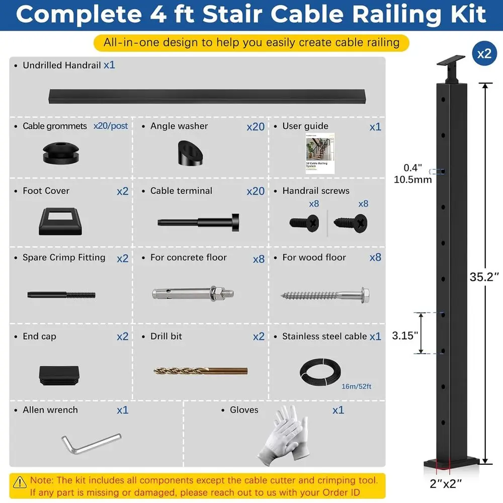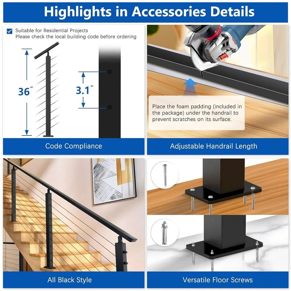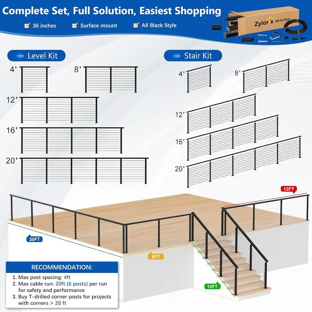 β‘Quick viewAluminum Deck Railing Kit, 42 Height x 8' Width, Black Powder-Coated, for Concrete or Wooden Steps (1 Post, 1 Panel)439.04 USDUSD 10821.20Hot