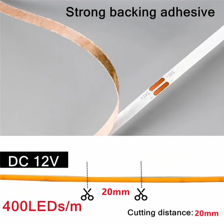 ↑3mm Ultra Thin 12V Colorful COB LED Strip Dimmable 3000K 4000K 6000K High Density Flexible Light 400LEDs For DIY Home Decor Lamp - TopDealBox