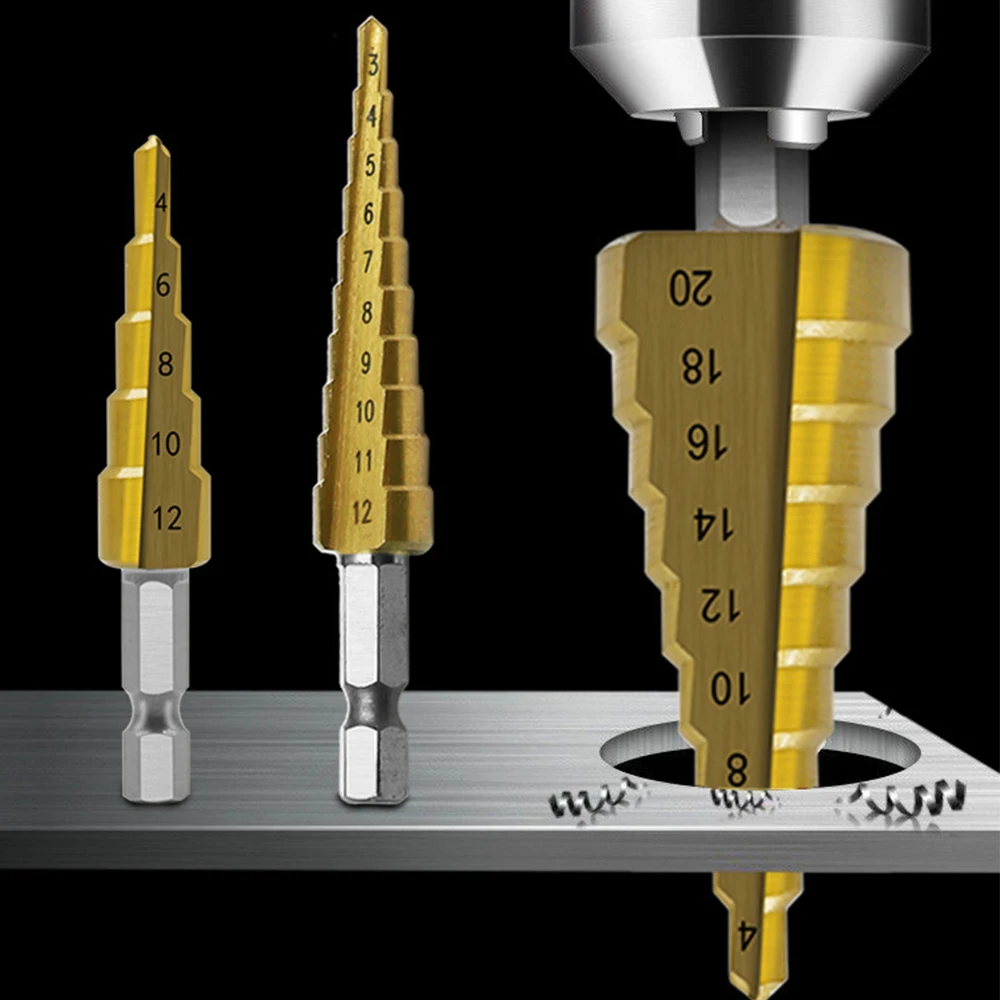 ↑3Pcs HSS Straight Groove Step Drill Bit 3-12mm 4-12mm 4-20mm Nitride Black Hex Wood Metal Hole Cutter Core Drilling Tools Set - TopDealBox