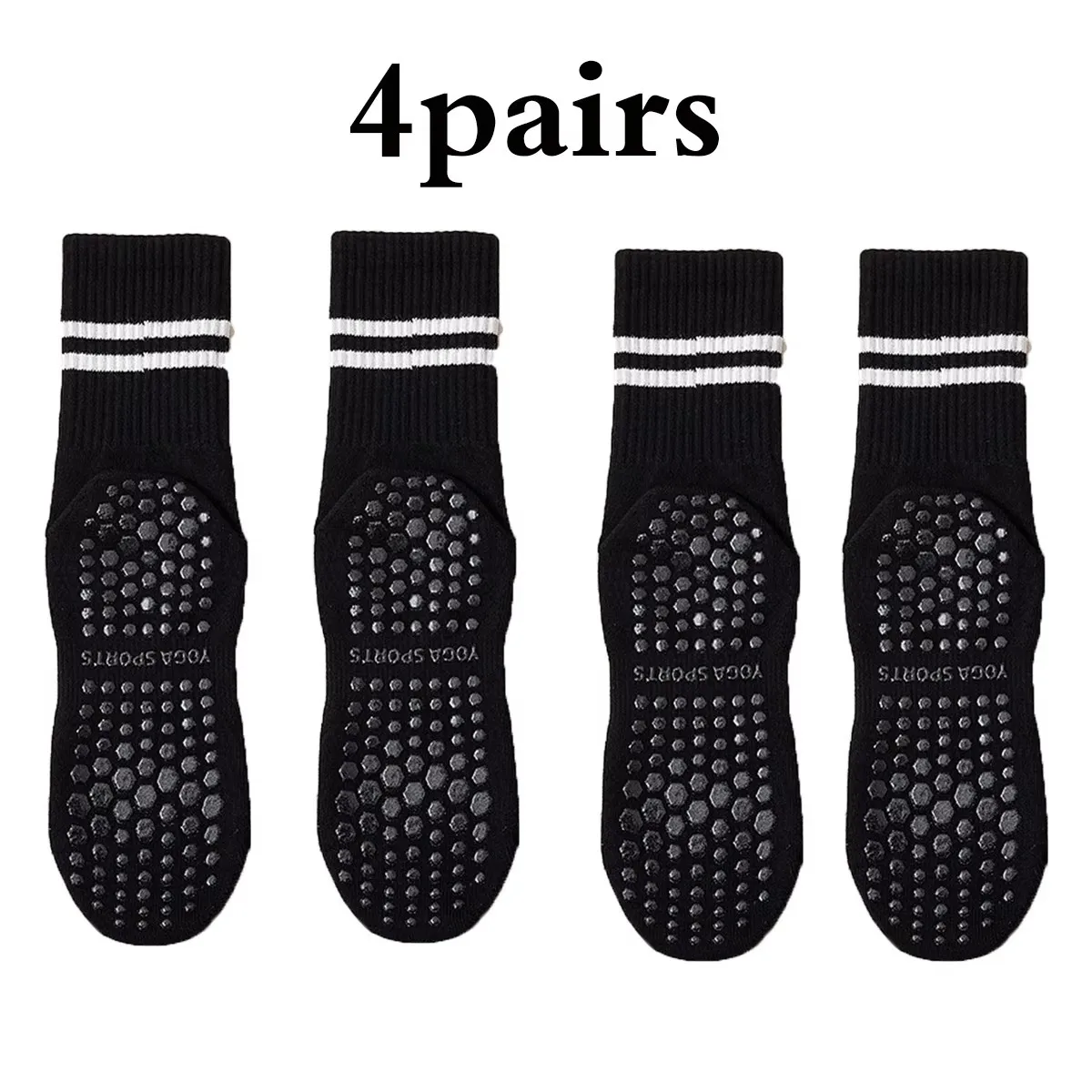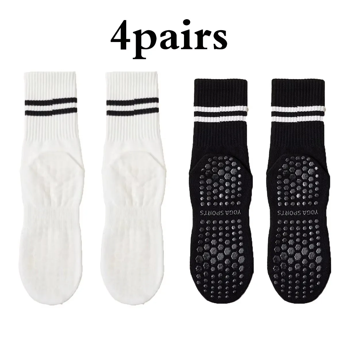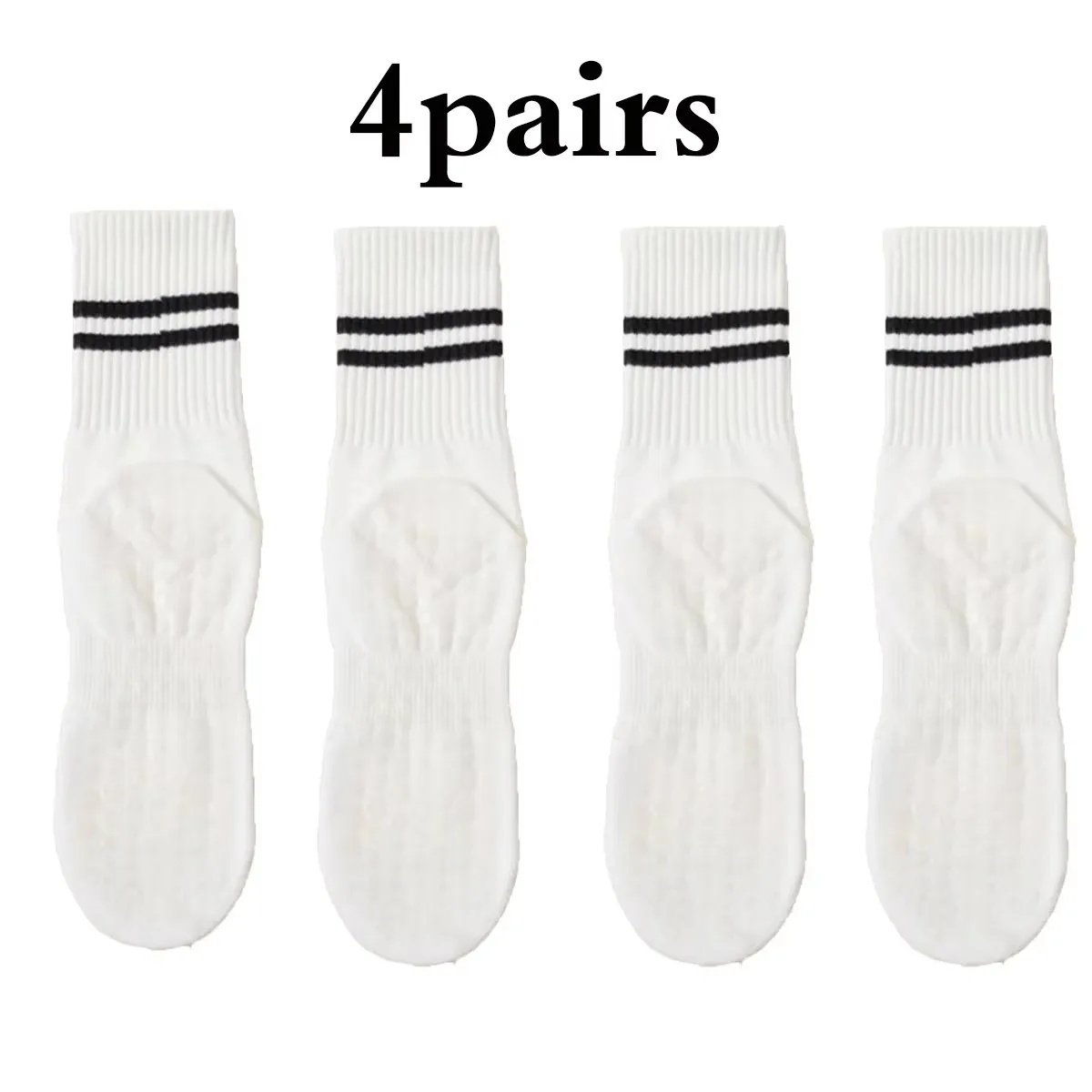 ↑4 pairs of yoga socks, medium length socks, pure cotton anti slip silicone indoor fitness pilates, women's sport socks wholesale - TopDealBox