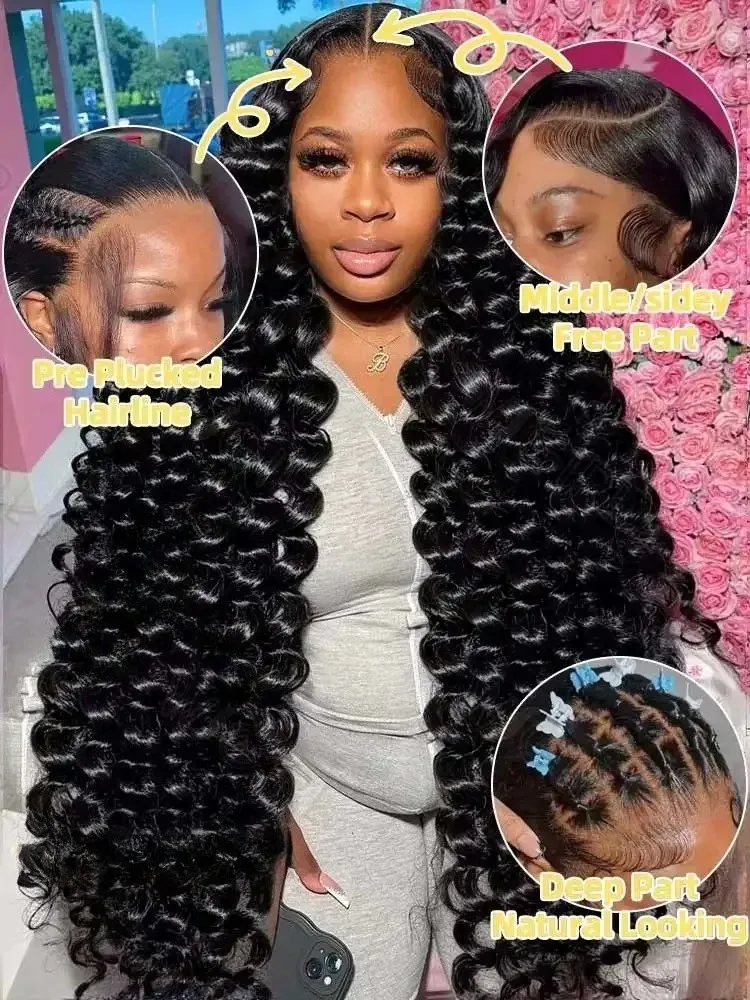 ↑40 42 Inch Loose Deep Wave Frontal Wigs 250% 13x4 13x6 HD Lace Frontal Wigs For Women Remy Loose Deep Curly Human Hair Wigs - TopDealBox