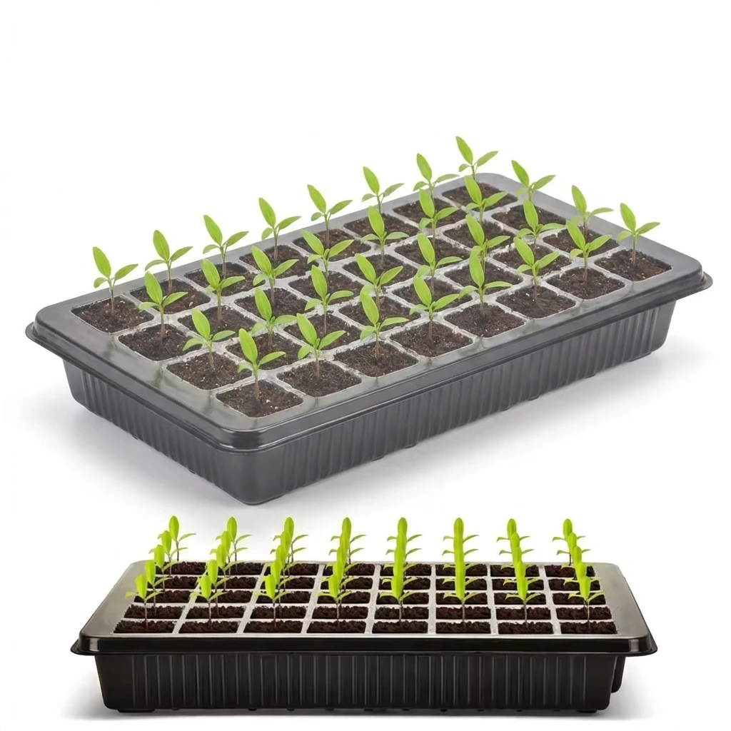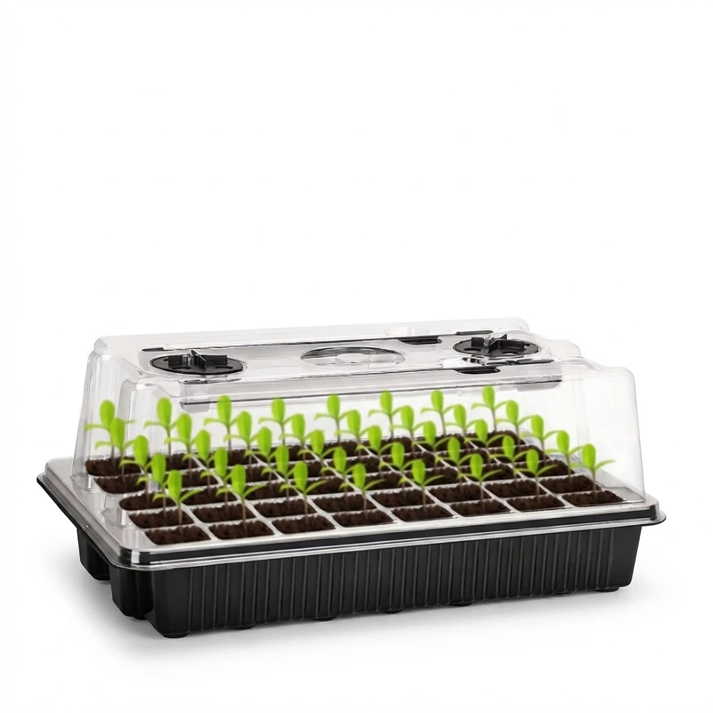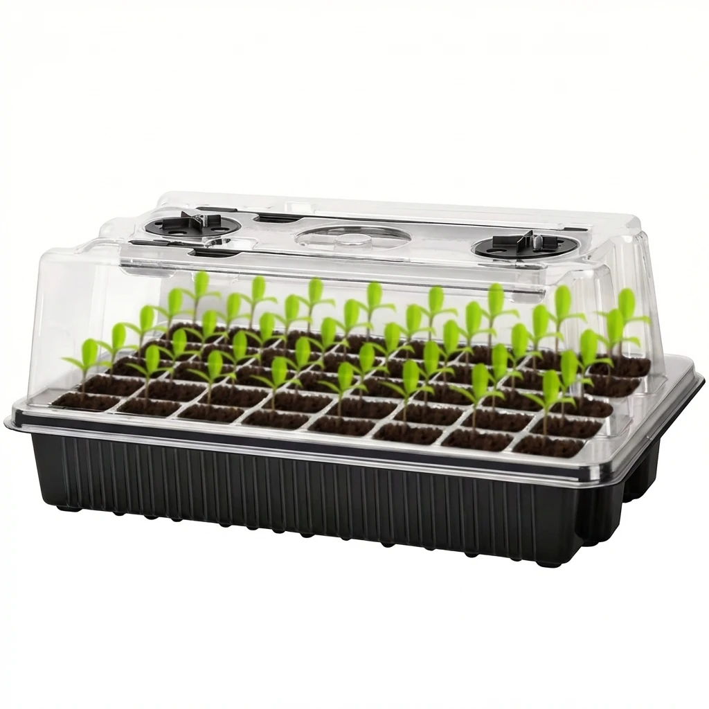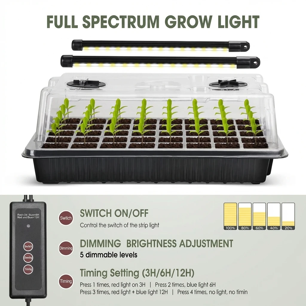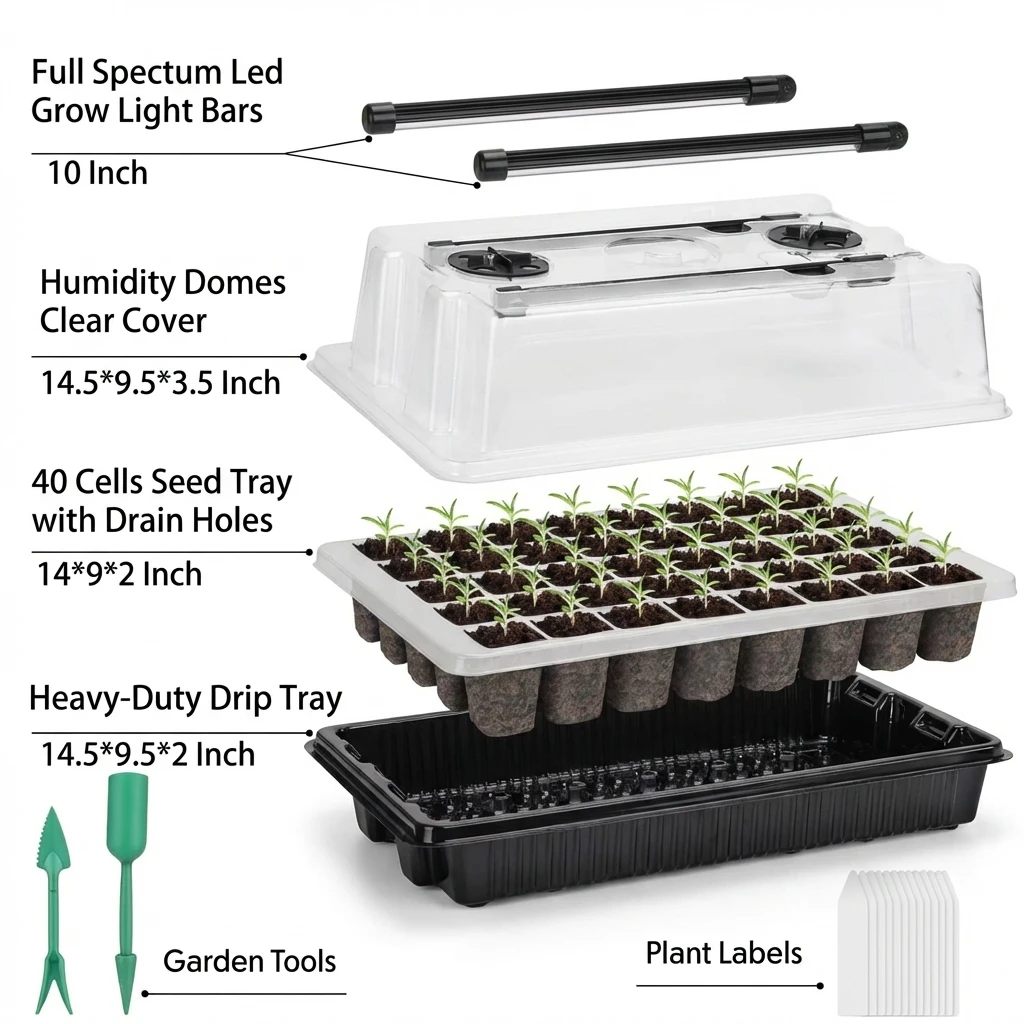 ↑40 Cells Seed Starter Kit with 2 Long Strip Grow Lights And Humidity Dome Seedling Germination Tray Set for Home Gardening - TopDealBox