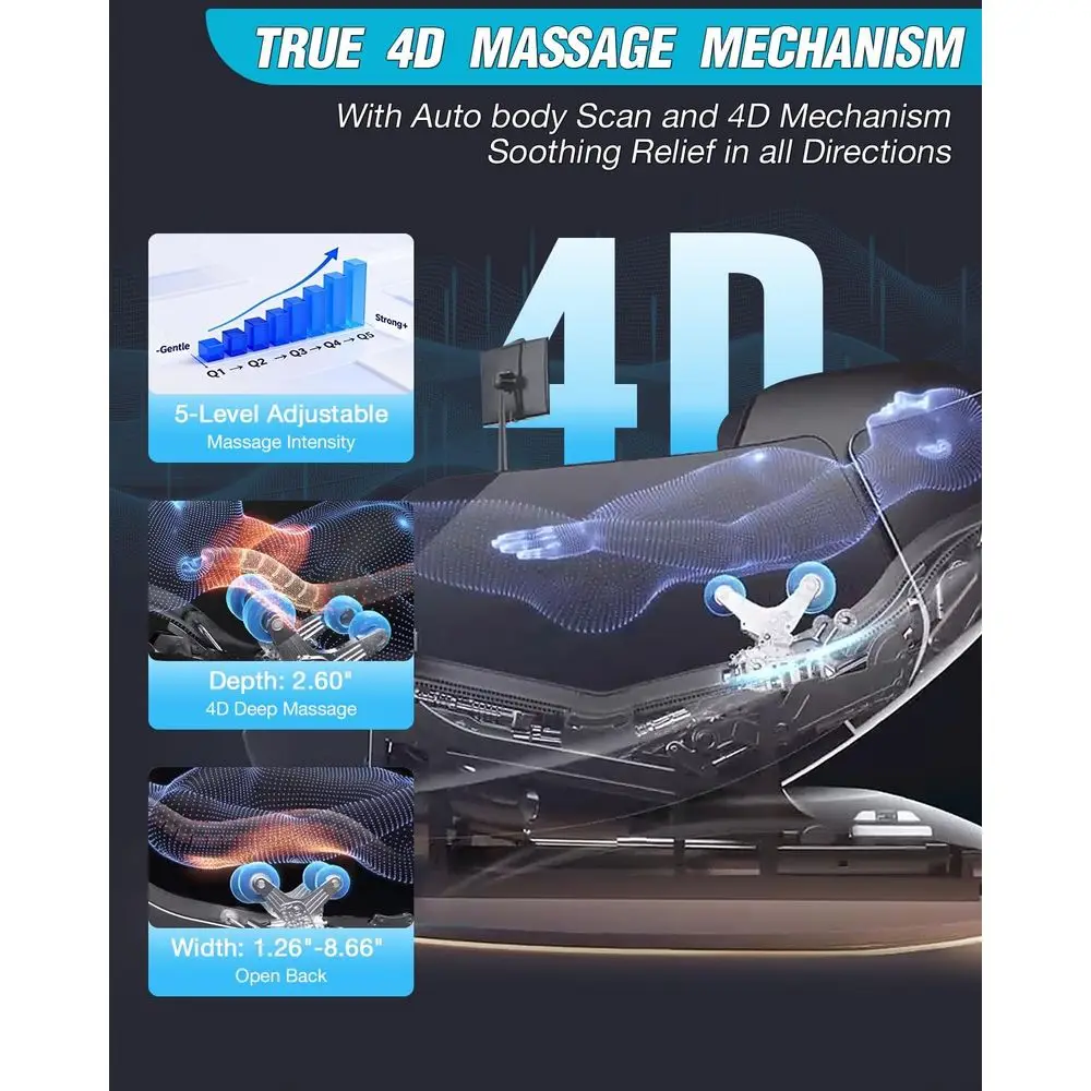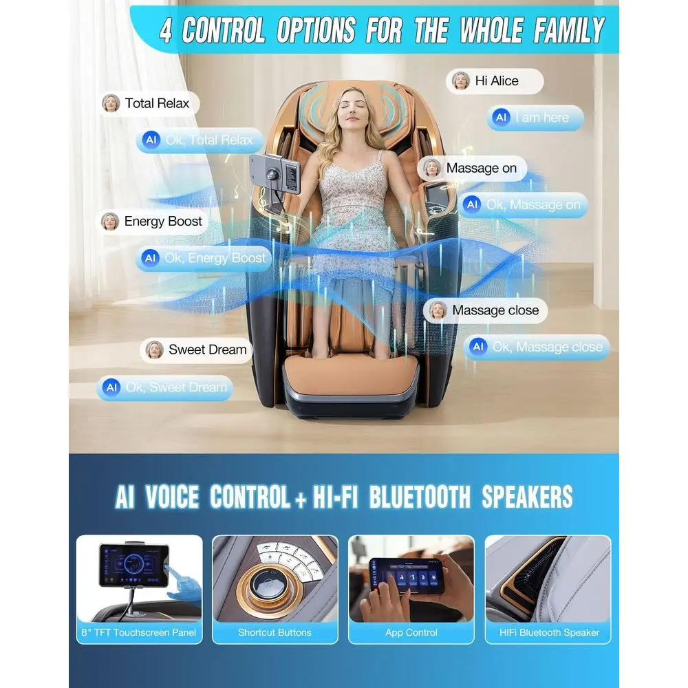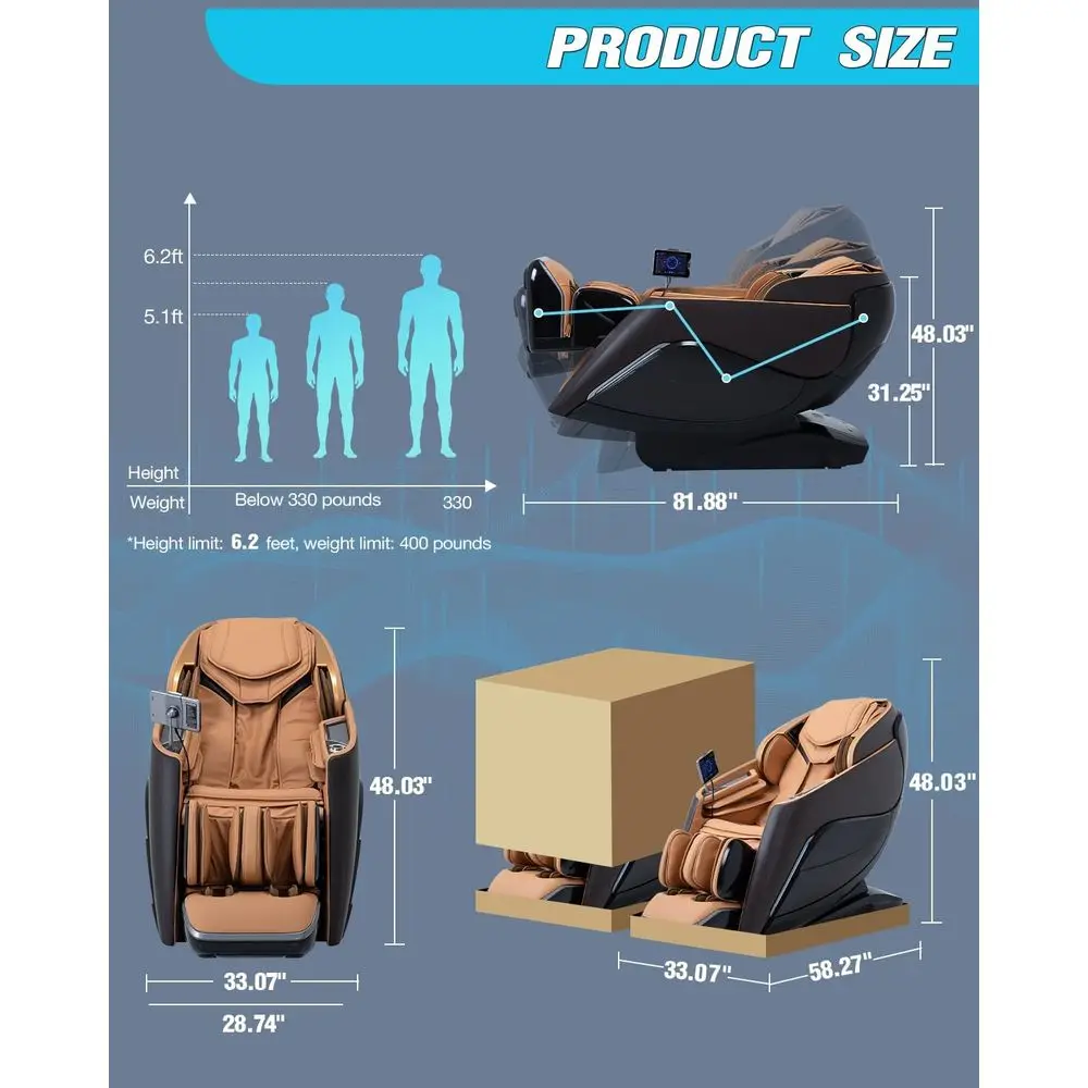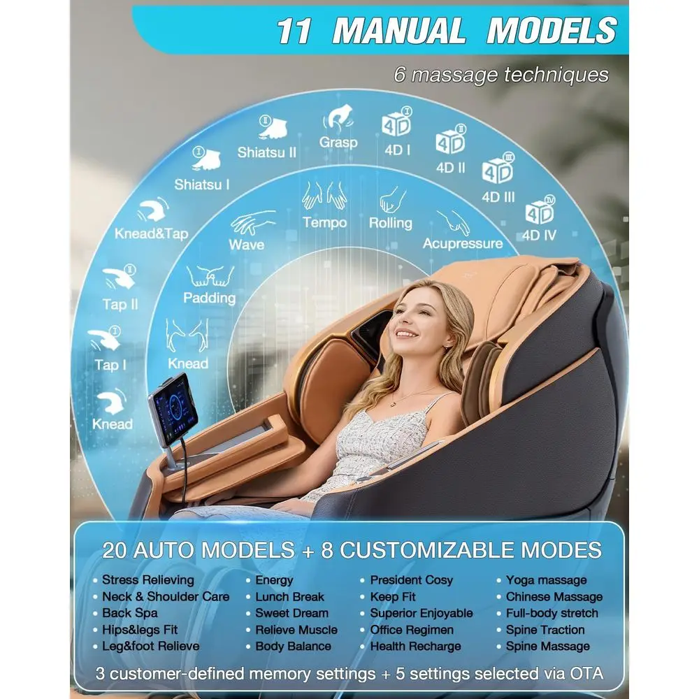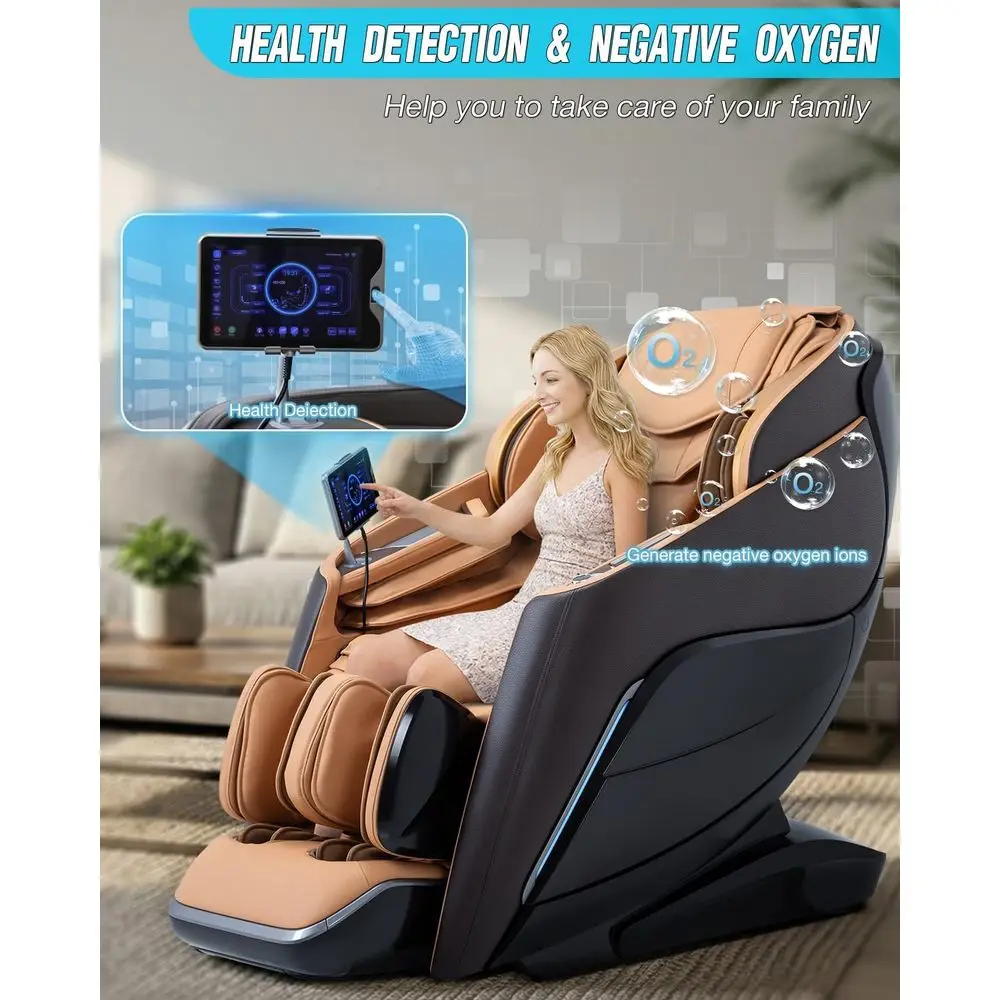 ↑4D Massage Chair with Full Body Zero Gravity, SL Track, Yoga Stretch, Detection, APP Control, and Electric Recline (Brown) - TopDealBox