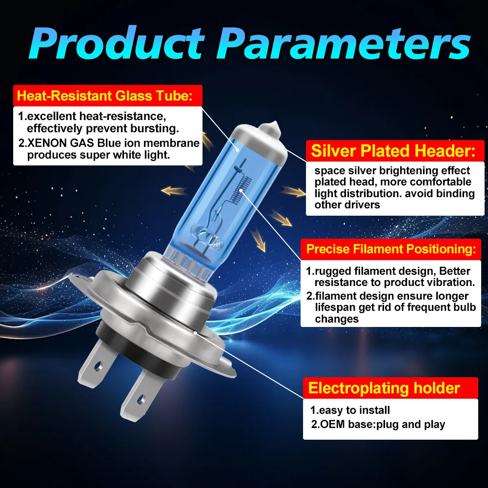 ↑4Pcs Car H7 100W Halogen Headlight 6000K Super White Daytime Running Lamp High Power Light Bulb 12V Fog Lights - TopDealBox