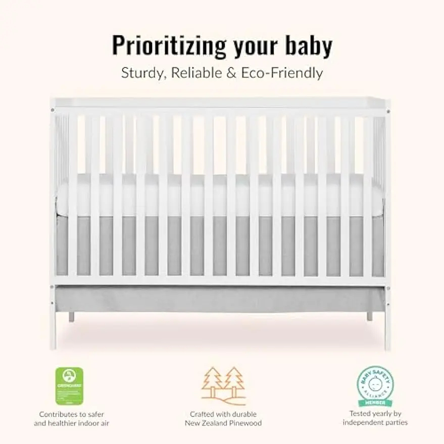↑5-in-1 Convertible Full-Size Baby Crib with Toddler, Day & Full Bed Conversion in White, Sustainable Pinewood - TopDealBox