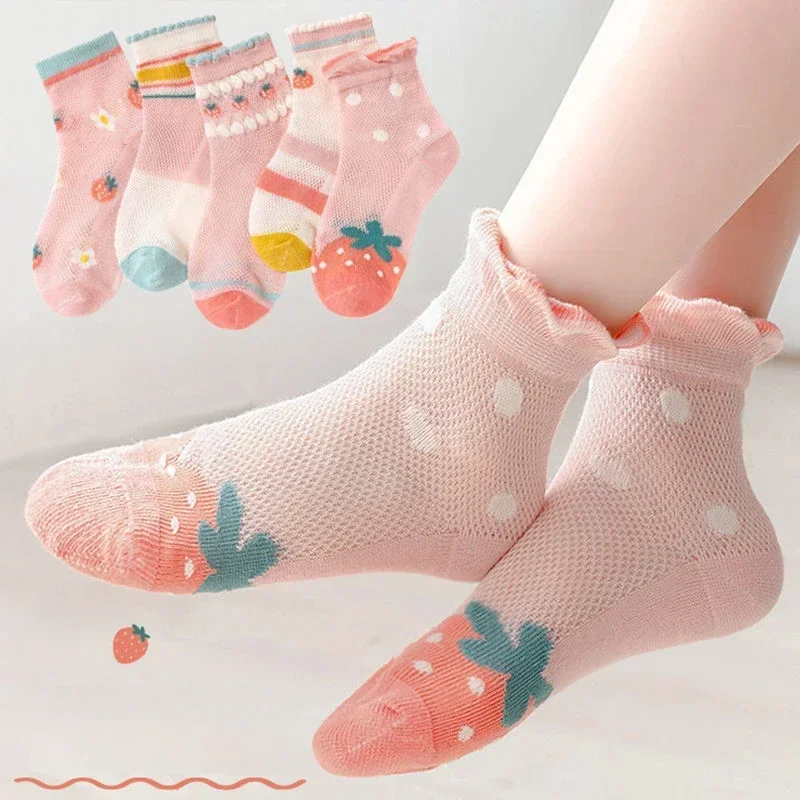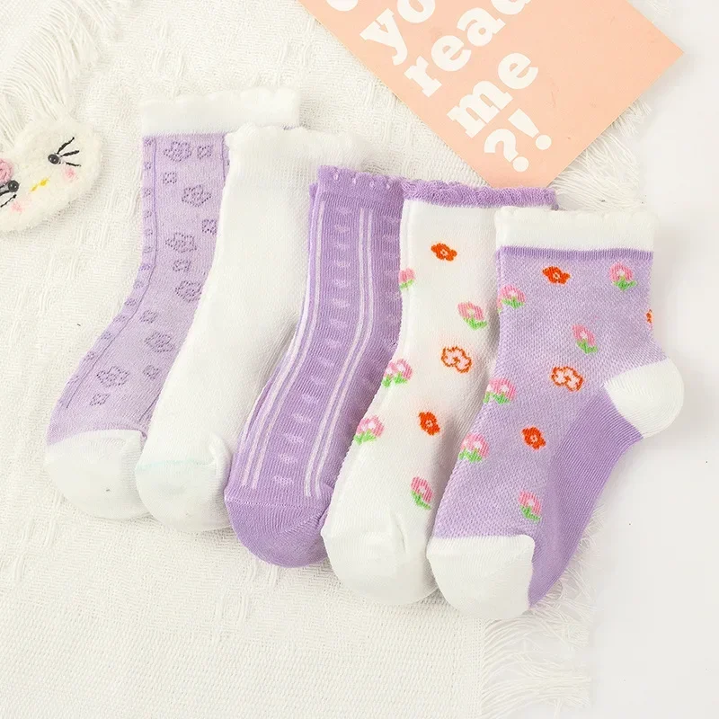 ↑5 Pairs/Lot Kids Soft Cotton Socks Korean Love Heart Flower Print Baby Girl Socks Autumn Winter Warm Children Middle Tube Socks - TopDealBox